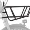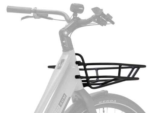 Deze aluminium voordrager is het standaard voorrek. Je kunt er een rugzak in zetten, een boodschappentas of een mand. Dit is de middelste uit de serie voordragers, met een bovenrand die door ca 10 cm lange pootjes wordt gedragen. Een stevig rek dat geschikt is voor de Sum Alpa, de Sum Stealth en de Sum Uco elektrische fietsen. Het rek wordt aan de nokken op het frame geschroefd en draait hierdoor niet mee met het stuur. Dat zal de eerste paar keer misschien vreemd aanvoelen maar het went vanzelf.