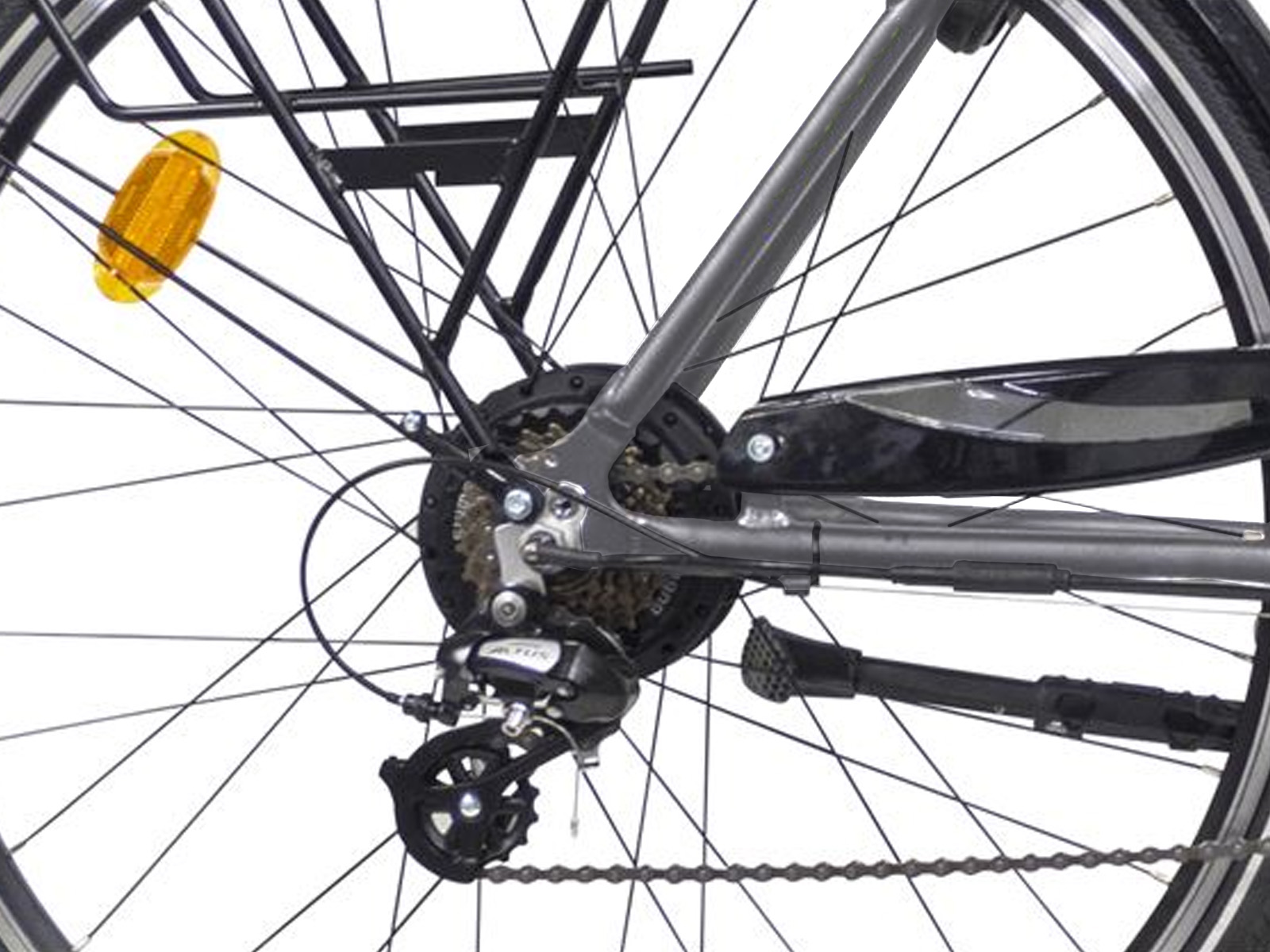 **De Orus Randonnee is een voordelige trekkingfiets met trapondersteuning** Het achterwiel is voorzien van een motor en een Shimano Altus 7 versnellingen derailleur. Met de trapondersteuning ingeschakeld fiets je met minimale inspanning tegen de wind in, een heuveltje op of met een behoorlijke last op de bagagedrager. Je kunt een snelheid van 25 km per uur bereiken met ondersteuning. Gelukkig zijn de v-brake remmen op voor- en achterwiel hierop berekend zodat je in geval van nood ook zo weer stilstaat. De 13 Ah accu is onder de bagagedrager gemonteerd. De accu is uitneembaar, maar kan ook op de fiets worden opgeladen. Op het LCD scherm aan het stuur kies je eenvoudig een van de 5 ondersteuningsstanden. **Heerlijk toeren** Kies een van de 7 versnellingen met de draaigreep rechts aan het stuur. Bepaal welke ondersteuningsstand je wilt gebruiken en selecteer deze op het LCD. Het genieten kan beginnen! De geveerde voorvork en het comfortabele zadel vangen gaten in het wegdek op. Met de Orus Randonnee heb je een voordelige maar complete elektrische fiets in handen waarmee het heerlijk toeren is. De fiets is zeer geschikt voor woon-werk verkeer, korte vakanties en tochten door de vrije natuur. Deze fiets met framemaat 50 cm in herenversie en 48 cm in damesversie wordt aangeboden in een fraaie grijze kleur. Voor vrijwel iedereen is een prettige zitpositie in te stellen door de lange zadelpen en het verstelbare stuur, passend voor mensen van ca 160 tot 185 cm. **Let op! De fiets wordt zonder slot geleverd** Bepaal zelf wel type slot je nodig hebt, een ringslot, een kettingslot of allebei. Als je je fiets wil verzekeren is een ART2 slot vaak verplicht. **Service en garantie** zijn in de vertrouwde handen van FSNplus. Bij aankoop van de fiets krijg je de contactgegevens mee. FSNplus heeft een landelijk dekkend netwerk van vaste en mobiele fietsreparateurs. Er is er altijd een bij je in de buurt. Als eigenaar van de fiets ben je zelf verantwoordelijk voor het onderhoud en het controleren en vervangen van de slijtende onderdelen, zoals remblokken en banden.