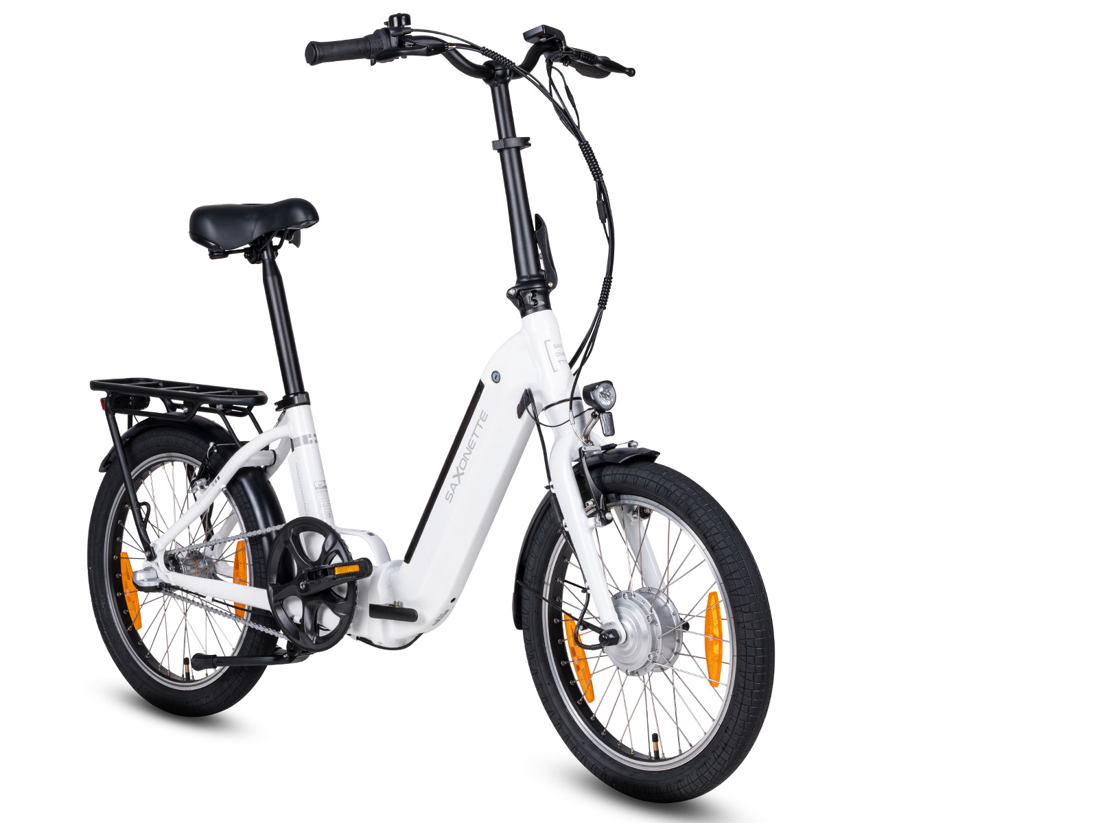 Saxonette Compact Comfort Plus 2.0 De elektrische vouwfiets is de ideale e-bike voor onbeperkte mobiliteit en een uitstekende reisgenoot wanneer je over beperkte ruimte beschikt. De lage instap maakt het opstappen aanzienlijk eenvoudiger. De fiets kan in enkele handelingen worden opgevouwen en gedragen of in de kofferbak worden opgeborgen. Met een totaal gewicht van 21 kilo is het niet de lichtste vouwfiets, hou daar rekening mee als je bijvoorbeeld hoog moet tillen. Deze e-bike met opvouwbaar aluminium frame en veiligheidssluiting heeft een 250 W voorwielmotor met volledig geïntegreerde 360 Wh accu. De lekbestendige banden met reflecterende strepen bieden je overal en altijd veiligheid en bescherming. Indien je zelf stevig meetrapt is een actieradius van 80 kilometer mogelijk. De terugtraprem is ideaal voor personen met weinig handkracht. Zonder je handen van het stuur te hoeven halen, wordt het remmen bijna intuïtief met de voet uitgevoerd. De V-brakes zijn daarnaast in te zetten voor extra remkracht. De middenstandaard laat de fiets stabiel staan, waardoor je prettig op kunt stappen. Service en garantie is in handen van FSNplus. Bij aankoop krijg je de nodige informatie van deze landelijk opererende organisatie. Bezorging door PostNL aan huis, de order wordt binnen enkele dagen verwerkt in het magazijn en daarna binnen 48 uur bezorgd door Post NL. Afhankelijk van besteldatum en -tijd zit er veelal drie tot maximaal vijf werkdagen tussen je order en de aflevering. Je krijgt van PostNL een e-mail over de bezorgdag.