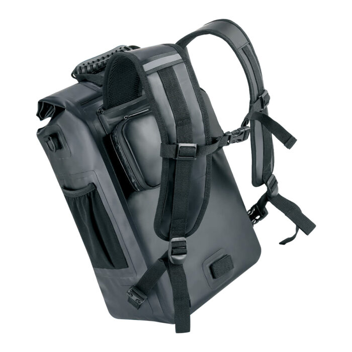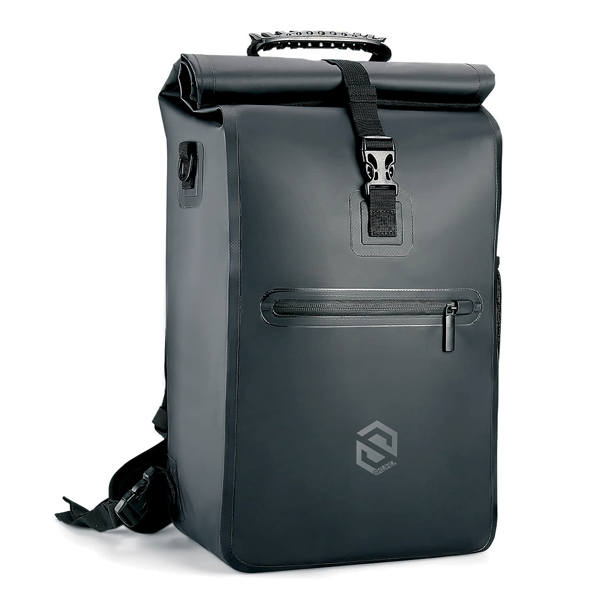 Waterdichte Urban Bag van 600D nylon met TPU-gelamineerde binnenkant. De naadloos gelaste constructie is 100%25 waterdicht, de binnenkant is versterkt met een PVC-profiel dat de tas stabiliseert en de lading beschermt tegen mogelijke schokken. – Hoge weerstand tegen slijtage en scheuren – Bevestiging op bagagedrager – Intrekbare schouderbanden voor snel transport – Beschermhoes om de bevestiging op de bagagedrager te verbergen – Interne vakken voor smartphones en tablets – Afmetingen: 62 x 28 x 17 cm – Inhoud: 23 liter