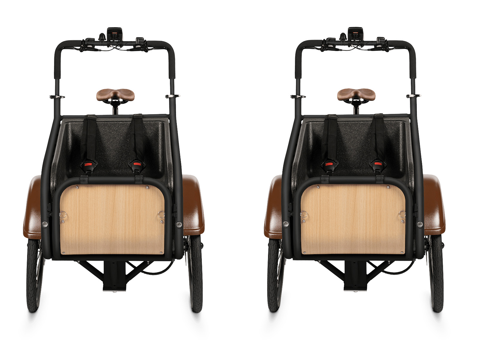 **Compacte bakfiets voor kinderen, honden en boodschappen** Met de Socibike Compact heb je je ideale reismaatje gevonden. De bakfiets is leverbaar in de vier standaard kleuren met matte afwerking: zwart, okergeel, cementgrijs en grijsgroen. Hoewel het type Compact zijn naam eer aandoet is er in de bak voldoende ruimte voor twee kleine kinderen of om twee kleine tot middelgrote honden mee te nemen. De naam slaat vooral op de breedte, die met 80 cm smal genoeg is om door iedere standaard deur te passen. Wel zo handig als je je Socibike bakfiets veilig in je tuin of de schuur wilt stallen. **Unieke voorklep** De voorkant van de bakfiets kan eenvoudig naar voren worden geklapt door de beide sluitpennen uit te trekken. Dat kost wel wat kracht, dus dat zal een kind niet voor elkaar krijgen. Neergeklapt wordt het erg gemakkelijk om in de bak te klimmen, zowel voor kinderen als honden. Ook het inladen van zware boodschappen is hiermee eenvoudiger, want dichter bij de grond, dan in een auto. **Veiligheid, comfort en duurzaamheid** Bij het ontwerpen van de Socibike Compact stond veiligheid voorop, direct gevolgd door comfort en duurzaamheid. Zo is de schokabsorberende bak gemaakt van EPP. Een lichtgewicht en sterk materiaal waarvan ook bijvoorbeeld de Maxi Cosi wordt gemaakt. U treft dit materiaal ook aan bij andere high-end bakfietsen en dat is niet voor niets. Het voorgevormde zitje in de bak is voorzien van twee driepuntsveiligheidsgordels. De drie wielen zorgen voor meer stabiliteit en veiligheid dan tweewieler bakfietsen. Om veilig stil te staan hoeft er geen standaard te worden uitgeklapt, maar trekt u eenvoudig de parkeerremmen aan. De wielen zijn voorzien van hydraulische schijfremmen, die piekfijn remmen, ook als je met volle bepakking de maximum ondersteunde snelheid van 25 kilometer per uur rijdt. Het frame is in Nederland geproduceerd en is veel sterker dan nodig om veilig te kunnen fietsen. De fabriek geeft feitelijk levenslange garantie op de frames en neemt ze graag weer van u over als u de fiets niet meer nodig heeft. De spatborden aan de voorwielen bedekken de gehele bovenrand van het wiel, waardoor kinderen niet in de spaken kunnen grijpen. De verlichting is zodanig weggewerkt in het frame dat de lampen niet af kunnen breken of ergens achter blijven haken. Ook op comfort is niet beknibbeld. Zo is de bakfiets voorzien van een krachtige Bafang middenmotor met een kettingaandrijving die is opgesloten in een Chainglider kettingkast. U hoeft niet te bedenken wanneer u moet schakelen, dat doet de Enviolo traploze versnellingsnaaf helemaal automatisch. De beide 24 inch voorwielen en het 26 inch achterwiel zijn voorzien van comfortabel dikke Schwalbe Big Apple Plus antilek banden. De verlichting is met het display op het stuur in te schakelen en werkt op de accu. Geen gedoe met batterijtjes vervangen dus. De fiets wordt geproduceerd door mensen met afstand tot de arbeidsmarkt. Het achterframe is van aluminium, het stalen voorframe is elektrolytisch verzinkt. Indien u de bakfiets binnen enkele jaren terugverkoopt aan de fabrikant krijgt u een gegarandeerd bedrag terug en dan wordt de fiets vrijwel geheel gerecycled. **Heerlijk rijden** Het rijden met een bakfiets vergt enige gewenning. De Socibike bakfiets kan worden proefgereden op aanvraag, maar ook krijgt u bij aflevering een korte instructie. U zult merken dat het rijden op een Socibike gemakkelijker gaat dan op andere bakfietsen. De voorwielen staan onder een hoek, waardoor het eenvoudiger is om rechtuit te rijden en waardoor het bochtenrijden ook gemakkelijker gaat. Na enkele meters zult u merken dat meehangen in de bocht het rijgedrag ten goede komt en al snel zal blijken dat u met de Socibike Compact vlot en soepel kunt rondrijden. Dankzij de smalle bouw en de kleine draaicirkel is het niet moeilijk om in het stadsverkeer mee te komen en parkeert u de bakfiets waar u wilt.