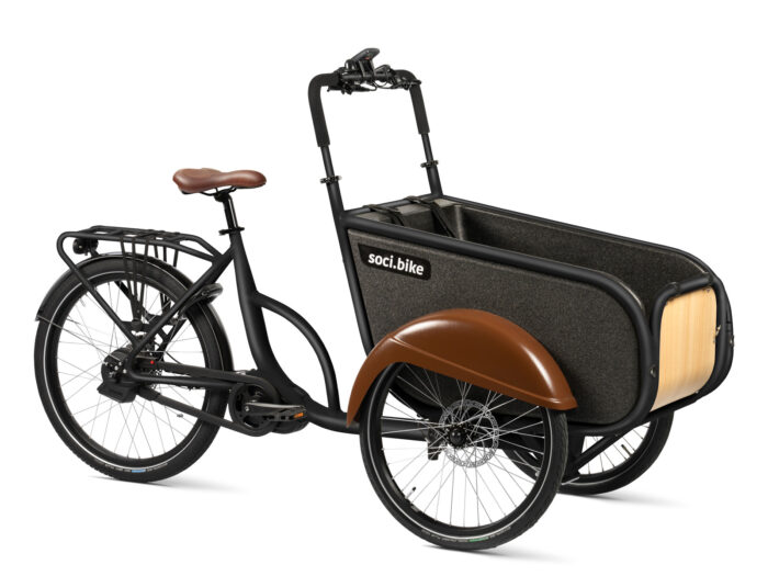 **Compacte bakfiets voor kinderen, honden en boodschappen** Met de Socibike Compact heb je je ideale reismaatje gevonden. De bakfiets is leverbaar in de vier standaard kleuren met matte afwerking: zwart, okergeel, cementgrijs en grijsgroen. Hoewel het type Compact zijn naam eer aandoet is er in de bak voldoende ruimte voor twee kleine kinderen of om twee kleine tot middelgrote honden mee te nemen. De naam slaat vooral op de breedte, die met 80 cm smal genoeg is om door iedere standaard deur te passen. Wel zo handig als je je Socibike bakfiets veilig in je tuin of de schuur wilt stallen. **Unieke voorklep** De voorkant van de bakfiets kan eenvoudig naar voren worden geklapt door de beide sluitpennen uit te trekken. Dat kost wel wat kracht, dus dat zal een kind niet voor elkaar krijgen. Neergeklapt wordt het erg gemakkelijk om in de bak te klimmen, zowel voor kinderen als honden. Ook het inladen van zware boodschappen is hiermee eenvoudiger, want dichter bij de grond, dan in een auto. **Veiligheid, comfort en duurzaamheid** Bij het ontwerpen van de Socibike Compact stond veiligheid voorop, direct gevolgd door comfort en duurzaamheid. Zo is de schokabsorberende bak gemaakt van EPP. Een lichtgewicht en sterk materiaal waarvan ook bijvoorbeeld de Maxi Cosi wordt gemaakt. U treft dit materiaal ook aan bij andere high-end bakfietsen en dat is niet voor niets. Het voorgevormde zitje in de bak is voorzien van twee driepuntsveiligheidsgordels. De drie wielen zorgen voor meer stabiliteit en veiligheid dan tweewieler bakfietsen. Om veilig stil te staan hoeft er geen standaard te worden uitgeklapt, maar trekt u eenvoudig de parkeerremmen aan. De wielen zijn voorzien van hydraulische schijfremmen, die piekfijn remmen, ook als je met volle bepakking de maximum ondersteunde snelheid van 25 kilometer per uur rijdt. Het frame is in Nederland geproduceerd en is veel sterker dan nodig om veilig te kunnen fietsen. De fabriek geeft feitelijk levenslange garantie op de frames en neemt ze graag weer van u over als u de fiets niet meer nodig heeft. De spatborden aan de voorwielen bedekken de gehele bovenrand van het wiel, waardoor kinderen niet in de spaken kunnen grijpen. De verlichting is zodanig weggewerkt in het frame dat de lampen niet af kunnen breken of ergens achter blijven haken. Ook op comfort is niet beknibbeld. Zo is de bakfiets voorzien van een krachtige Bafang middenmotor met een kettingaandrijving die is opgesloten in een Chainglider kettingkast. U hoeft niet te bedenken wanneer u moet schakelen, dat doet de Enviolo traploze versnellingsnaaf helemaal automatisch. De beide 24 inch voorwielen en het 26 inch achterwiel zijn voorzien van comfortabel dikke Schwalbe Big Apple Plus antilek banden. De verlichting is met het display op het stuur in te schakelen en werkt op de accu. Geen gedoe met batterijtjes vervangen dus. De fiets wordt geproduceerd door mensen met afstand tot de arbeidsmarkt. Het achterframe is van aluminium, het stalen voorframe is elektrolytisch verzinkt. Indien u de bakfiets binnen enkele jaren terugverkoopt aan de fabrikant krijgt u een gegarandeerd bedrag terug en dan wordt de fiets vrijwel geheel gerecycled. **Heerlijk rijden** Het rijden met een bakfiets vergt enige gewenning. De Socibike bakfiets kan worden proefgereden op aanvraag, maar ook krijgt u bij aflevering een korte instructie. U zult merken dat het rijden op een Socibike gemakkelijker gaat dan op andere bakfietsen. De voorwielen staan onder een hoek, waardoor het eenvoudiger is om rechtuit te rijden en waardoor het bochtenrijden ook gemakkelijker gaat. Na enkele meters zult u merken dat meehangen in de bocht het rijgedrag ten goede komt en al snel zal blijken dat u met de Socibike Compact vlot en soepel kunt rondrijden. Dankzij de smalle bouw en de kleine draaicirkel is het niet moeilijk om in het stadsverkeer mee te komen en parkeert u de bakfiets waar u wilt.