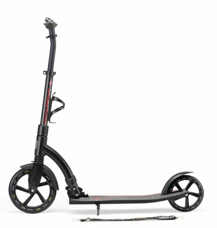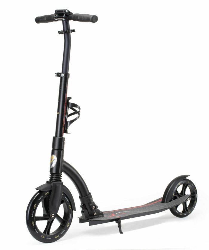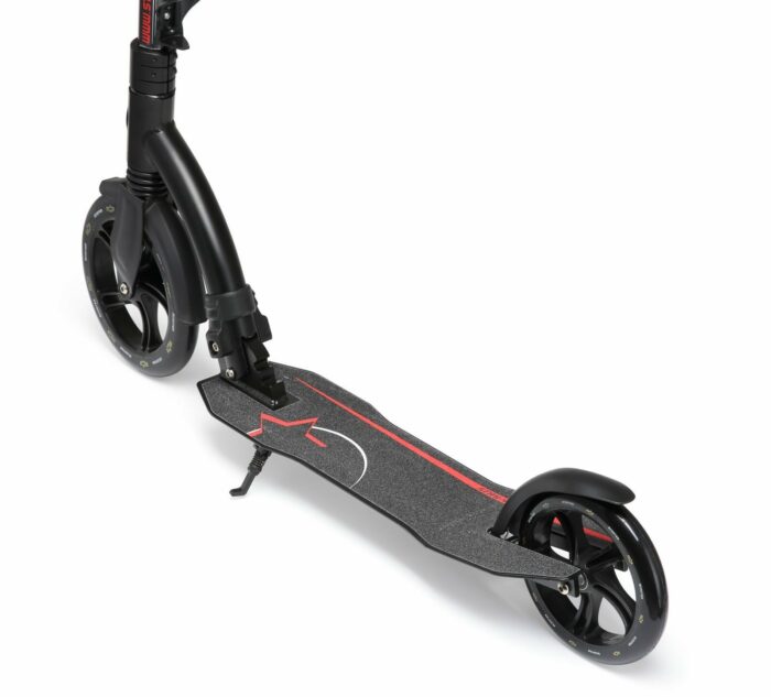 ** Star Scooter, sportieve stepjes voor jong en oud** Naast autopeds maakt Star Scooter ook zeer degelijke, maar lichtgewicht, vouwbare steps in diverse formaten en uitvoeringen. Modellen waarmee je voor je lol wat kunt rondrijden, maar ook mee naar school kunt steppen op de stoep (kies hiervoor bij voorkeur de typen met de grotere wielen, voor extra rijcomfort). Wil je stunten met je step, kies dan juist voor de smalle modellen met de kleine wielen. De meeste typen zijn er in diverse prijsklassen en kwaliteiten. Ze voldoen alle aan de basisvereisten. Het is aan jou om het beste model voor je doel te kiezen. En daarna de favoriete kleur. Star Scooter heeft veel te bieden, dus het zal lastig kiezen zijn, maar we hebben vast precies wat je zoekt! **De kenmerken van dit model:** – XXL voorwiel: 9 inch, met band voor verbeterde rijeigenschappen – Voorvering absorbeert oneffenheden in het wegdek – Innovatief vouwmechanisme voor snel en efficiënt inklappen – Snelspanner om het stuur muurvast te zetten – Laagliggend voetbord voor afzetten met weinig inspanning – Spatborden voor en achter voorkomen vuil en nattigheid op kleding – In hoogte verstelbaar stuur met bidonhouder – Extra grote voetrem op het achterwiel kan tot 100Kg afremmen – Supersterk antislip Griptape: ook op lange trajecten zeker staan – 100%25 voorgemonteerd