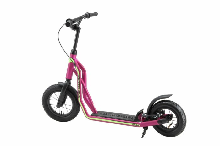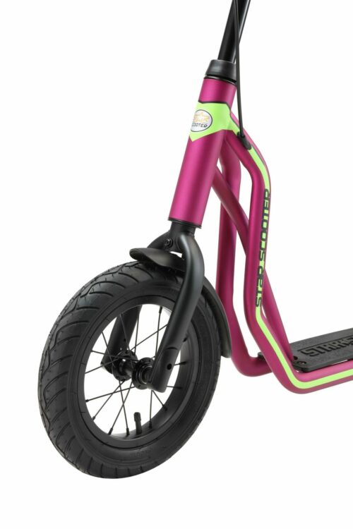 **Star Scooter, de mooiste steps voor klein en groot** Een step is fantastisch speelgoed voor een kind – en wanneer het model het toelaat ook voor volwassenen. Je leert spelenderwijs je evenwicht houden, verkeerssituaties inschatten, omgaan met snelheid, sturen en afremmen. Het vergroot de wereld, als je het steppen eenmaal onder de knie hebt kun je snel en met weinig inspanning hele afstanden afleggen. Goede kwaliteit en hoge veiligheid zijn daarbij van het grootste belang. Star Scooter steps voldoen aan alle veiligheidseisen en zijn oerdegelijk gebouwd. Het brede Star Scooter assortiment kent een grote variatie aan wielmaten, kleuren en typen steps. Er zit er zeker een tussen die precies voldoet de wensen van uw kind of uzelf. **Kenmerken van dit model:** Zeer stabiel stalen buisframe met meerder slagvaste laklagen in diverse kleuren. Deze step voldoet aan alle normen en vereisten van de EU, stuurt licht, is duurzaam en gaat lang mee. De step is veilig, met gladde lasnaden. Dit model heeft een kindvriendelijke handrem voor extra veiligheid tijdens het spelen. Langdurig plezier gegarandeerd, met 12 inch luchtband voor en 10 inch achter. **Specificaties** – Leeftijd: vanaf ca. 7 jaar (ca. 120 cm lengte) – Lengte: 115 cm – Voetbord: 35 cm x 11 cm – Stuurhoogte: 70-86 cm – Stuurbreedte: 52 cm – Gewicht: 7.8 Kg – 12 inch luchtband voor, 10 inch luchtband achter – Stabiel stalen frame met meerdere slagvaste laklagen – Spatborden op voor- en achterwiel: geen vieze kleding – Handrem op het achterwiel met kindermaat handgreep – Licht draaiend stuur, in hoogte en hoek verstelbaar – Gifvrije veiligheidshandgrepen – Antislip voetbord en stabiele zijstandaard – Remleidingen veilig weggewerkt binnen het frame