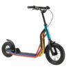 **Star Scooter, de mooiste steps voor klein en groot** Een step is fantastisch speelgoed voor een kind – en wanneer het model het toelaat ook voor volwassenen. Je leert spelenderwijs je evenwicht houden, verkeerssituaties inschatten, omgaan met snelheid, sturen en afremmen. Het vergroot de wereld, als je het steppen eenmaal onder de knie hebt kun je snel en met weinig inspanning hele afstanden afleggen. Goede kwaliteit en hoge veiligheid zijn daarbij van het grootste belang. Star Scooter steps voldoen aan alle veiligheidseisen en zijn oerdegelijk gebouwd. Het brede Star Scooter assortiment kent een grote variatie aan wielmaten, kleuren en typen steps. Er zit er zeker een tussen die precies voldoet de wensen van uw kind of uzelf. **Kenmerken van dit model:** Zeer stabiel stalen buisframe met meerder slagvaste laklagen in diverse kleuren. Deze step voldoet aan alle normen en vereisten van de EU, stuurt licht, is duurzaam en gaat lang mee. De step is veilig, met gladde lasnaden. Dit model heeft een kindvriendelijke handrem voor extra veiligheid tijdens het spelen. Langdurig plezier gegarandeerd, met 12 inch luchtband voor en 10 inch achter. **Specificaties** – Leeftijd: vanaf ca. 7 jaar (ca. 120 cm lengte) – Lengte: 115 cm – Voetbord: 35 cm x 11 cm – Stuurhoogte: 70-86 cm – Stuurbreedte: 52 cm – Gewicht: 7.8 Kg – 12 inch luchtband voor, 10 inch luchtband achter – Stabiel stalen frame met meerdere slagvaste laklagen – Spatborden op voor- en achterwiel: geen vieze kleding – Handrem op het achterwiel met kindermaat handgreep – Licht draaiend stuur, in hoogte en hoek verstelbaar – Gifvrije veiligheidshandgrepen – Antislip voetbord en stabiele zijstandaard – Remleidingen veilig weggewerkt binnen het frame