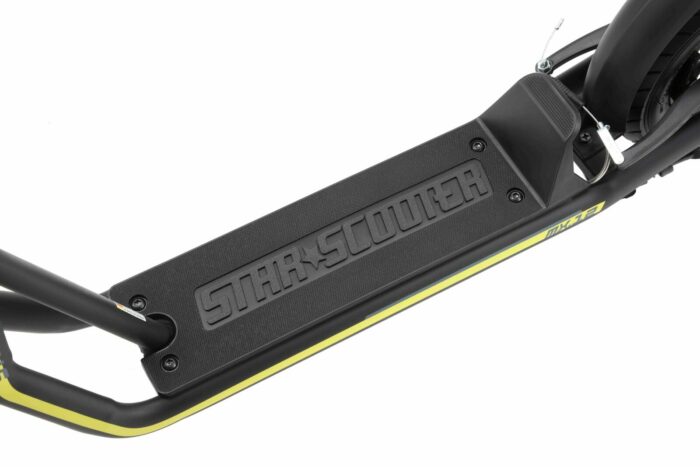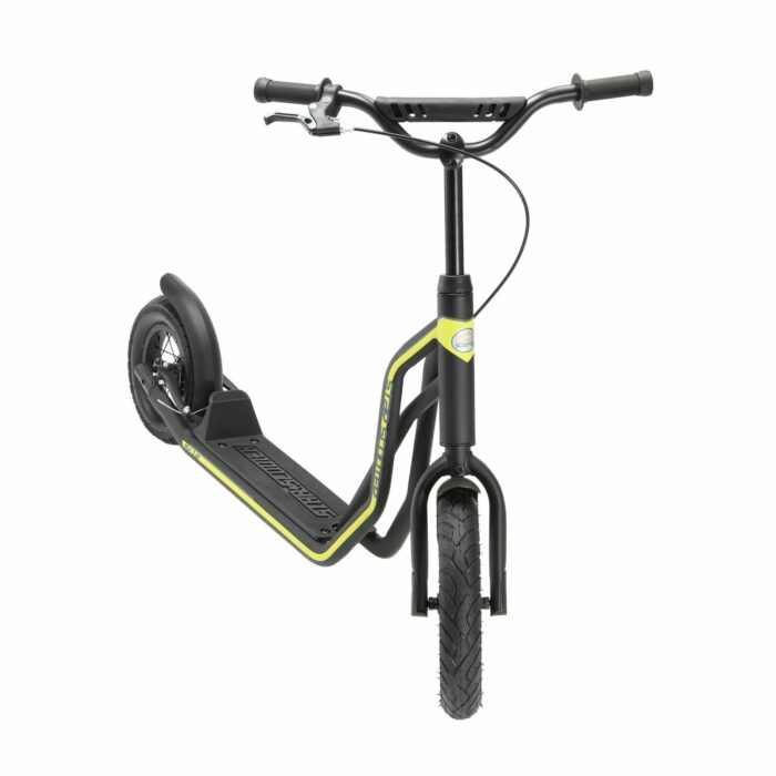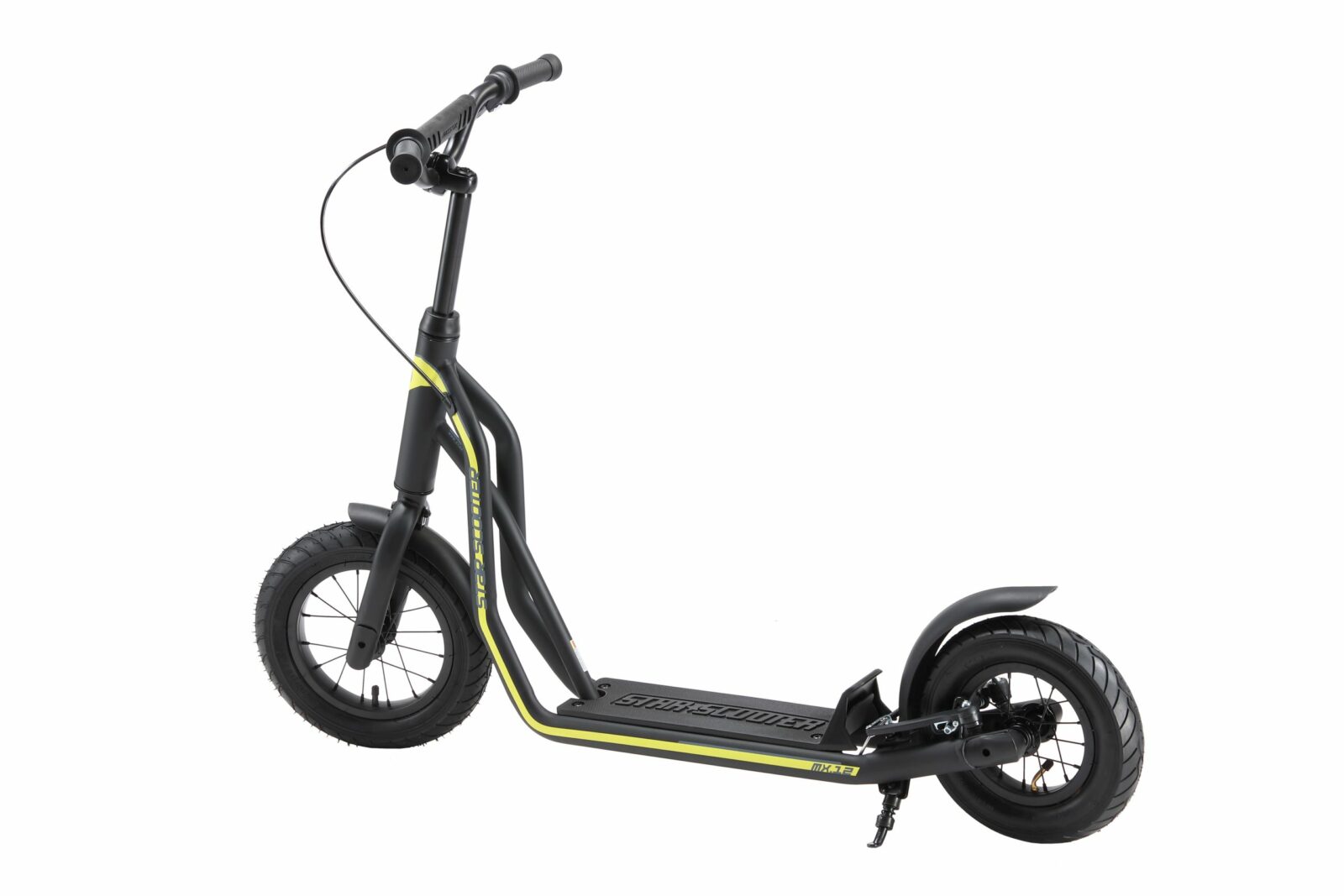 **Star Scooter, de mooiste steps voor klein en groot** Een step is fantastisch speelgoed voor een kind – en wanneer het model het toelaat ook voor volwassenen. Je leert spelenderwijs je evenwicht houden, verkeerssituaties inschatten, omgaan met snelheid, sturen en afremmen. Het vergroot de wereld, als je het steppen eenmaal onder de knie hebt kun je snel en met weinig inspanning hele afstanden afleggen. Goede kwaliteit en hoge veiligheid zijn daarbij van het grootste belang. Star Scooter steps voldoen aan alle veiligheidseisen en zijn oerdegelijk gebouwd. Het brede Star Scooter assortiment kent een grote variatie aan wielmaten, kleuren en typen steps. Er zit er zeker een tussen die precies voldoet de wensen van uw kind of uzelf. **Kenmerken van dit model:** Zeer stabiel stalen buisframe met meerder slagvaste laklagen in diverse kleuren. Deze step voldoet aan alle normen en vereisten van de EU, stuurt licht, is duurzaam en gaat lang mee. De step is veilig, met gladde lasnaden. Dit model heeft een kindvriendelijke handrem voor extra veiligheid tijdens het spelen. Langdurig plezier gegarandeerd, met 12 inch luchtband voor en 10 inch achter. **Specificaties** – Leeftijd: vanaf ca. 7 jaar (ca. 120 cm lengte) – Lengte: 115 cm – Voetbord: 35 cm x 11 cm – Stuurhoogte: 70-86 cm – Stuurbreedte: 52 cm – Gewicht: 7.8 Kg – 12 inch luchtband voor, 10 inch luchtband achter – Stabiel stalen frame met meerdere slagvaste laklagen – Spatborden op voor- en achterwiel: geen vieze kleding – Handrem op het achterwiel met kindermaat handgreep – Licht draaiend stuur, in hoogte en hoek verstelbaar – Gifvrije veiligheidshandgrepen – Antislip voetbord en stabiele zijstandaard – Remleidingen veilig weggewerkt binnen het frame