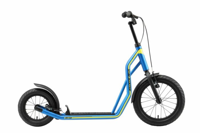 **Star Scooter, de mooiste steps voor klein en groot** Een step is fantastisch speelgoed voor een kind – en wanneer het model het toelaat ook voor volwassenen. Je leert spelenderwijs je evenwicht houden, verkeerssituaties inschatten, omgaan met snelheid, sturen en afremmen. Het vergroot de wereld, als je het steppen eenmaal onder de knie hebt kun je snel en met weinig inspanning hele afstanden afleggen. Goede kwaliteit en hoge veiligheid zijn daarbij van het grootste belang. Star Scooter steps voldoen aan alle veiligheidseisen en zijn oerdegelijk gebouwd. Het brede Star Scooter assortiment kent een grote variatie aan wielmaten, kleuren en typen steps. Er zit er zeker een tussen die precies voldoet de wensen van uw kind of uzelf. **Kenmerken van dit model:** Zeer stabiel stalen buisframe met meerder slagvaste laklagen in diverse kleuren. Deze step voldoet aan alle normen en vereisten van de EU, stuurt licht, is duurzaam en gaat lang mee. De step is veilig, met gladde lasnaden. Dit model heeft een kindvriendelijke handrem voor extra veiligheid tijdens het spelen. Langdurig plezier gegarandeerd, met 16 inch luchtband voor en 12 inch achter. **Specificaties** – Leeftijd: vanaf ca. 8 jaar (ca. 125cm lengte) – Lengte: 135 cm – Voetbord: 35 cm x 11 cm – Stuurhoogte: 80-96 cm – Stuurbreedte: 56 cm – Gewicht: 9.5 Kg – 16 inch luchtband voor, 12 inch luchtband achter – Stabiel stalen frame met meerdere slagvaste laklagen – Spatborden op voor- en achterwiel: geen vieze kleding – Handrem op het achterwiel met kindermaat handgreep – Licht draaiend stuur, in hoogte en hoek verstelbaar – Gifvrije veiligheidshandgrepen – Antislip voetbord en stabiele zijstandaard – Remleidingen veilig weggewerkt binnen het frame