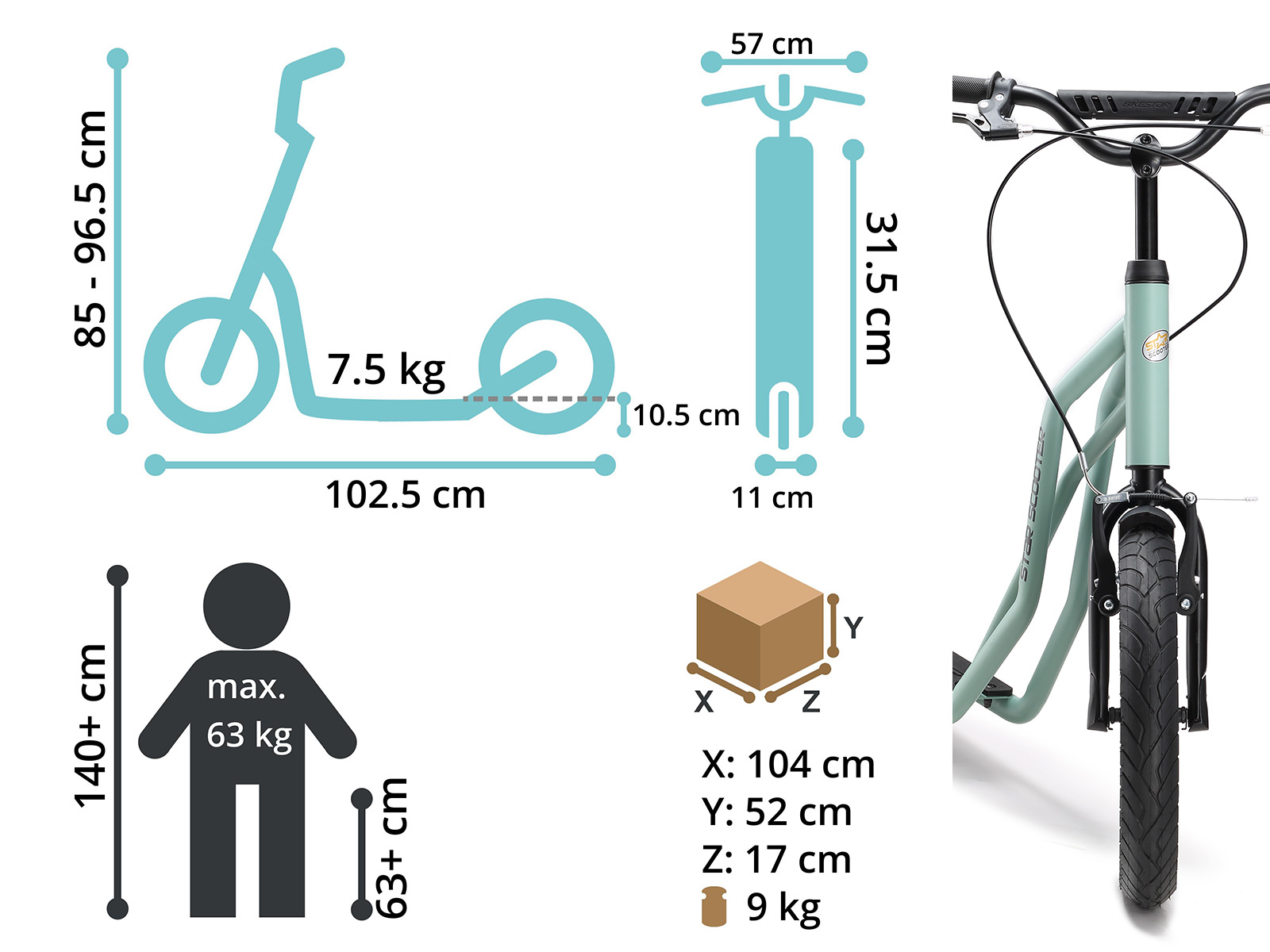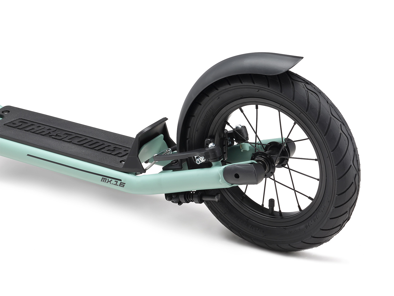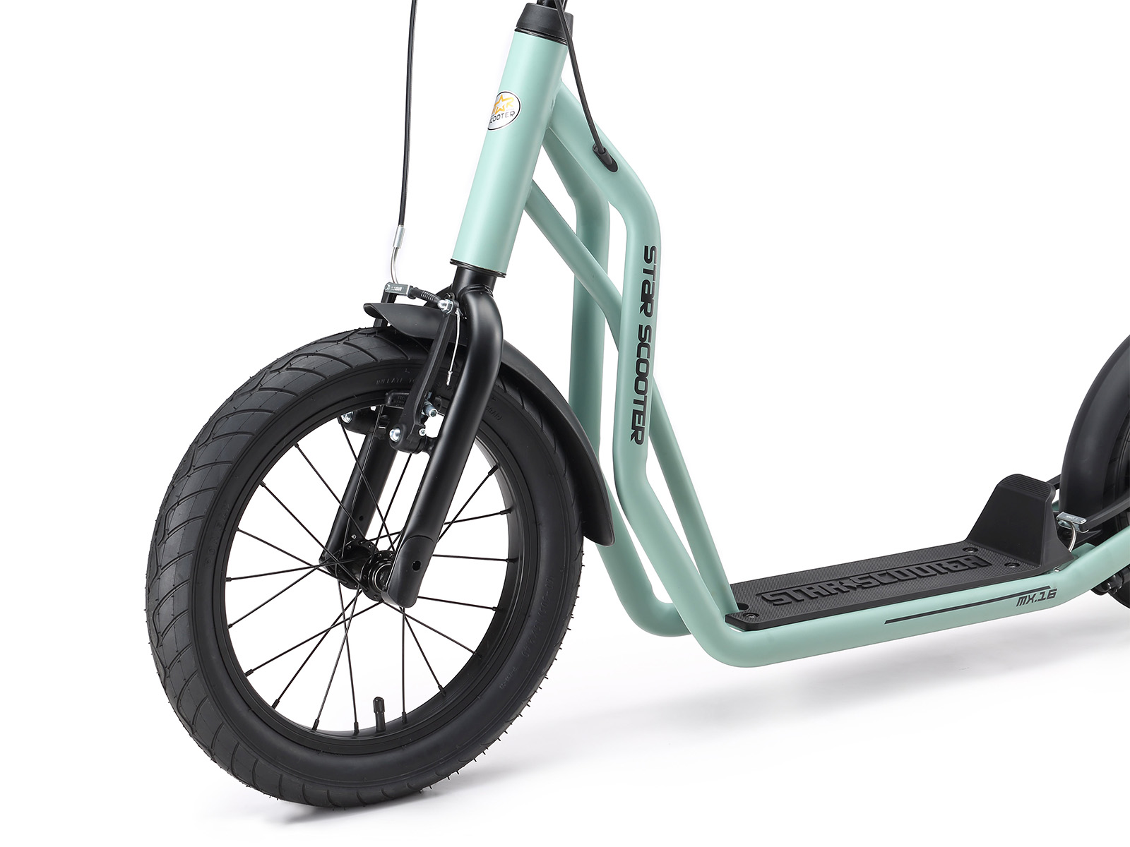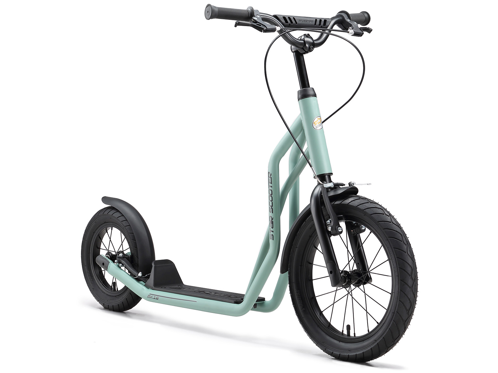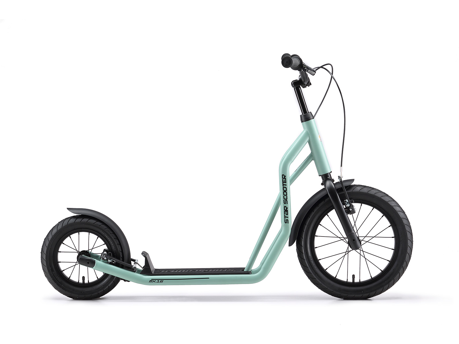 **Star Scooter, de mooiste steps voor klein en groot** Een step is fantastisch speelgoed voor een kind – en wanneer het model het toelaat ook voor volwassenen. Je leert spelenderwijs je evenwicht houden, verkeerssituaties inschatten, omgaan met snelheid, sturen en afremmen. Het vergroot de wereld, als je het steppen eenmaal onder de knie hebt kun je snel en met weinig inspanning hele afstanden afleggen. Goede kwaliteit en hoge veiligheid zijn daarbij van het grootste belang. Star Scooter steps voldoen aan alle veiligheidseisen en zijn oerdegelijk gebouwd. Het brede Star Scooter assortiment kent een grote variatie aan wielmaten, kleuren en typen steps. Er zit er zeker een tussen die precies voldoet de wensen van uw kind of uzelf. **Kenmerken van dit model:** Zeer stabiel stalen buisframe met meerder slagvaste laklagen in diverse kleuren. Deze step voldoet aan alle normen en vereisten van de EU, stuurt licht, is duurzaam en gaat lang mee. De step is veilig, met gladde lasnaden. Dit model heeft een kindvriendelijke handrem voor extra veiligheid tijdens het spelen. Langdurig plezier gegarandeerd, met 16 inch luchtband voor en 12 inch achter. **Specificaties** – Leeftijd: vanaf ca. 8 jaar (ca. 125cm lengte) – Lengte: 135 cm – Voetbord: 35 cm x 11 cm – Stuurhoogte: 80-96 cm – Stuurbreedte: 56 cm – Gewicht: 9.5 Kg – 16 inch luchtband voor, 12 inch luchtband achter – Stabiel stalen frame met meerdere slagvaste laklagen – Spatborden op voor- en achterwiel: geen vieze kleding – Handrem op het achterwiel met kindermaat handgreep – Licht draaiend stuur, in hoogte en hoek verstelbaar – Gifvrije veiligheidshandgrepen – Antislip voetbord en stabiele zijstandaard – Remleidingen veilig weggewerkt binnen het frame