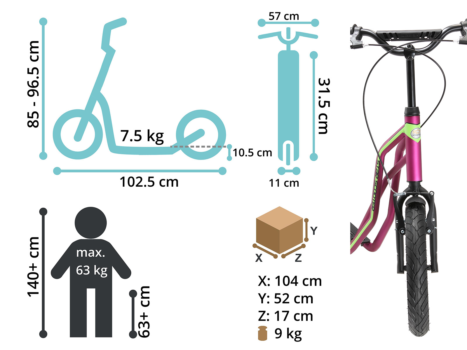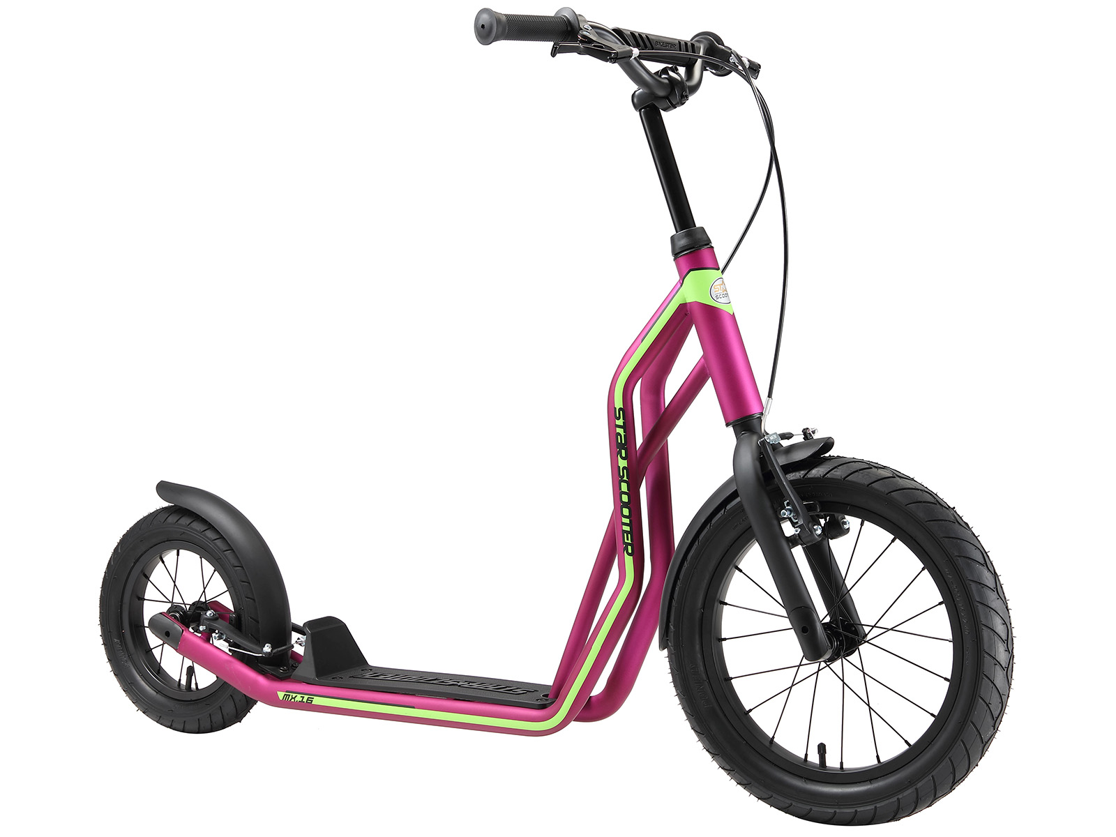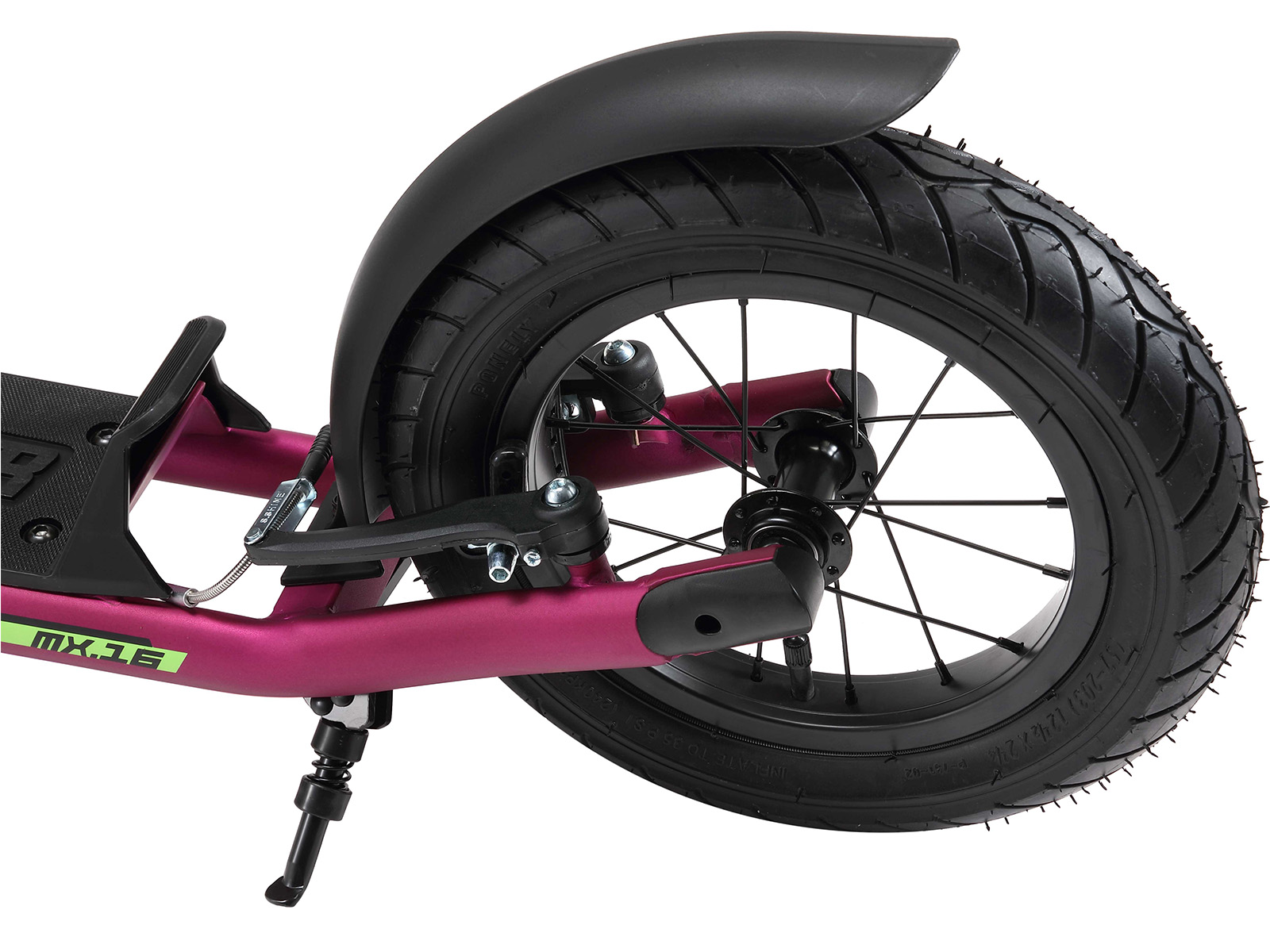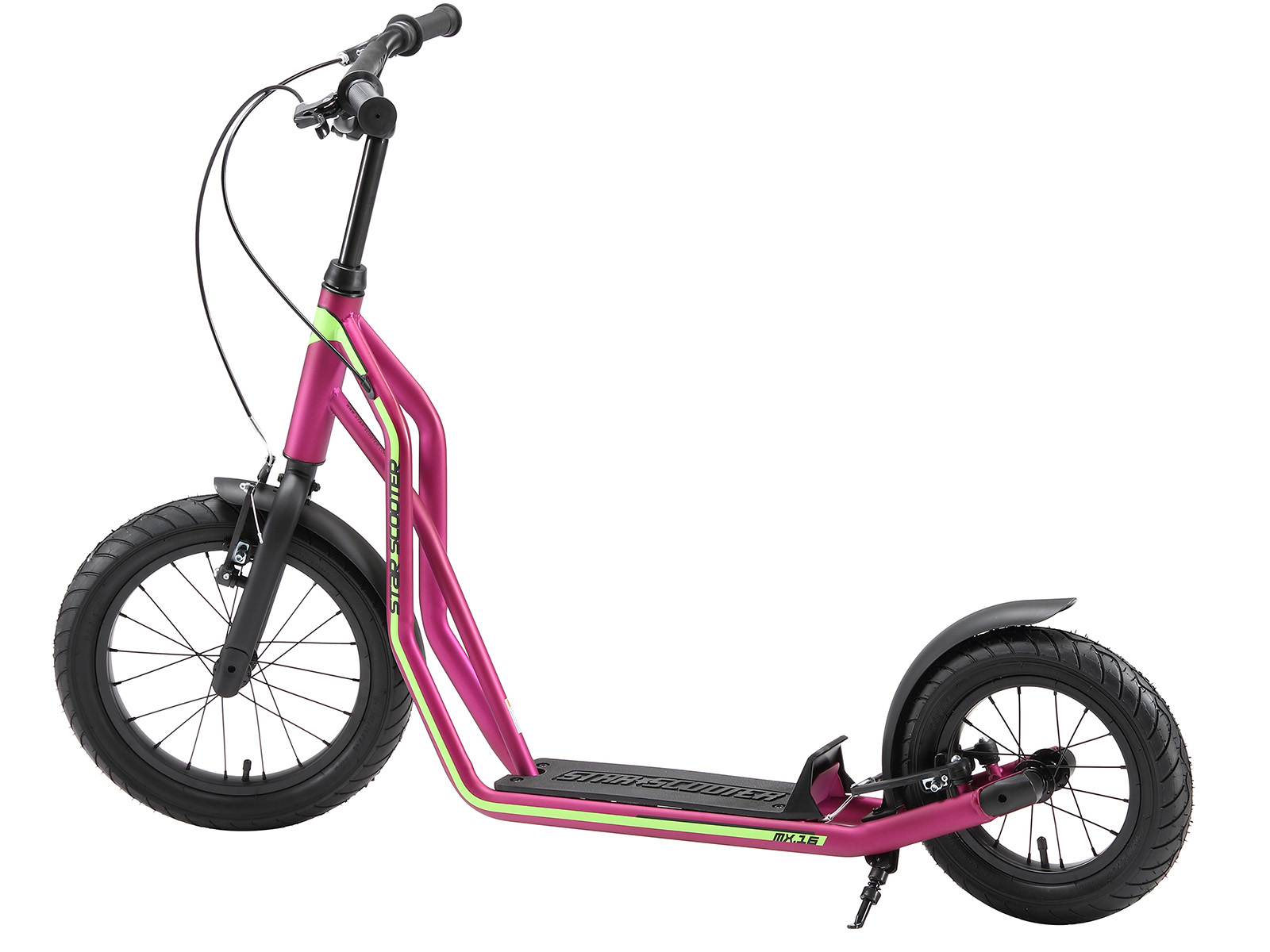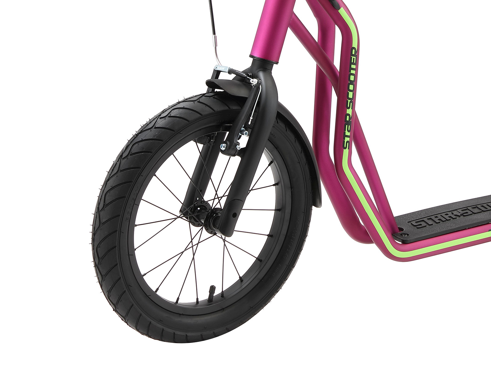**Star Scooter, de mooiste steps voor klein en groot** Een step is fantastisch speelgoed voor een kind – en wanneer het model het toelaat ook voor volwassenen. Je leert spelenderwijs je evenwicht houden, verkeerssituaties inschatten, omgaan met snelheid, sturen en afremmen. Het vergroot de wereld, als je het steppen eenmaal onder de knie hebt kun je snel en met weinig inspanning hele afstanden afleggen. Goede kwaliteit en hoge veiligheid zijn daarbij van het grootste belang. Star Scooter steps voldoen aan alle veiligheidseisen en zijn oerdegelijk gebouwd. Het brede Star Scooter assortiment kent een grote variatie aan wielmaten, kleuren en typen steps. Er zit er zeker een tussen die precies voldoet de wensen van uw kind of uzelf. **Kenmerken van dit model:** Zeer stabiel stalen buisframe met meerder slagvaste laklagen in diverse kleuren. Deze step voldoet aan alle normen en vereisten van de EU, stuurt licht, is duurzaam en gaat lang mee. De step is veilig, met gladde lasnaden. Dit model heeft een kindvriendelijke handrem voor extra veiligheid tijdens het spelen. Langdurig plezier gegarandeerd, met 16 inch luchtband voor en 12 inch achter. **Specificaties** – Leeftijd: vanaf ca. 8 jaar (ca. 125cm lengte) – Lengte: 135 cm – Voetbord: 35 cm x 11 cm – Stuurhoogte: 80-96 cm – Stuurbreedte: 56 cm – Gewicht: 9.5 Kg – 16 inch luchtband voor, 12 inch luchtband achter – Stabiel stalen frame met meerdere slagvaste laklagen – Spatborden op voor- en achterwiel: geen vieze kleding – Handrem op het achterwiel met kindermaat handgreep – Licht draaiend stuur, in hoogte en hoek verstelbaar – Gifvrije veiligheidshandgrepen – Antislip voetbord en stabiele zijstandaard – Remleidingen veilig weggewerkt binnen het frame