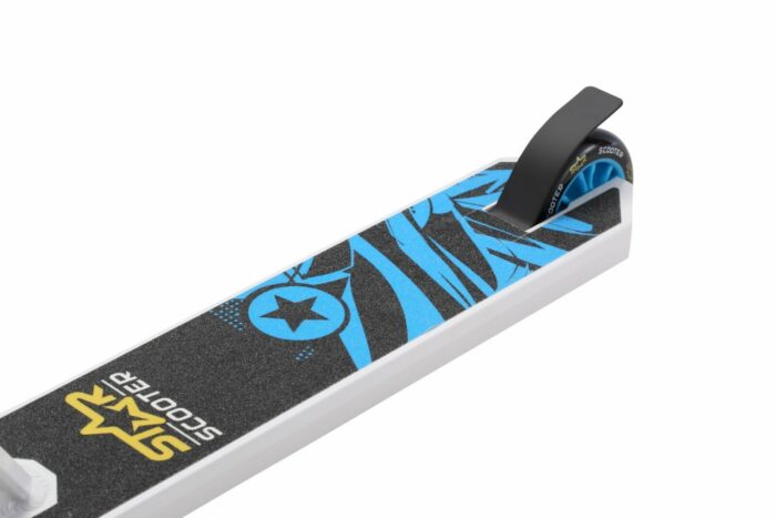 ** Star Scooter, sportieve stepjes voor jong en oud** Naast autopeds maakt Star Scooter ook zeer degelijke, maar lichtgewicht, (soms vouwbare) steps in diverse formaten en uitvoeringen. Modellen waarmee je voor je lol wat kunt rondrijden, maar ook mee naar school kunt steppen op de stoep (kies hiervoor bij voorkeur de typen met de grotere wielen, voor extra rijcomfort). Wil je stunten met je step, kies dan juist voor de smalle modellen met de kleine wielen. De meeste typen zijn er in diverse prijsklassen en kwaliteiten. Ze voldoen alle aan de basisvereisten. Het is aan jou om het beste model voor je doel te kiezen. En daarna de favoriete kleur. Star Scooter heeft veel te bieden, dus het zal lastig kiezen zijn, maar we hebben vast precies wat je zoekt! **De kenmerken van dit model:** – Leeftijd: vanaf ca. 7 – 8 jaar (ca. 125cm lengte) – Lengte: 63cm – Voetbord: 48cm x 10cm – Stuurhoogte: 84 cm – Stuurbreedte: 52 cm – Gewicht: 3,1 Kg – Max draaggewicht 100 Kg – Geschroefde Super Industry Headset – Versterkte stalen vork – Superlicht Concaves Deck met Grind Rails – Versterkte 3 mm aluminium Butterfly Neck – Antislip Grip Tape – Stabiele achterwielrem van CrMo staal – 100mm High Rebound banden op aluminiumvelgen – Ultralichtlopende ABEC 7 chroom kogellagers – Stuur van 6061 T6 vliegtuig-aluminium met 2° Backsweep – 95%25 voorgemonteerd