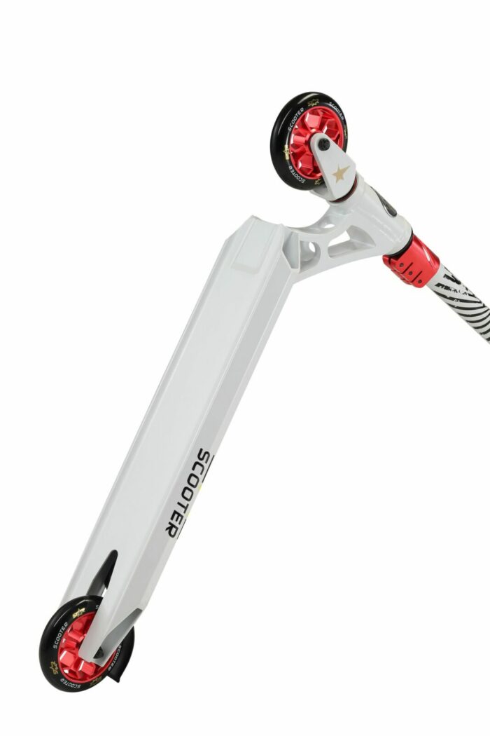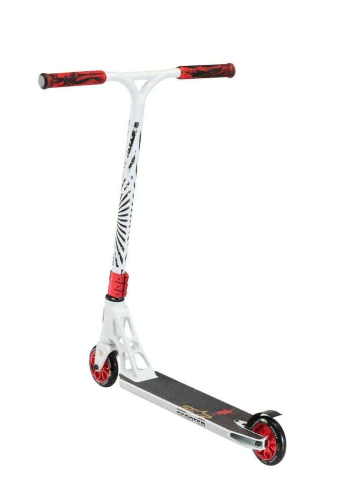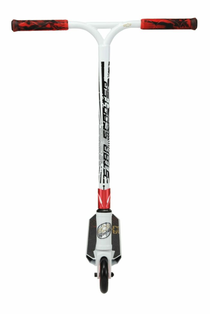 ** Star Scooter, sportieve stepjes voor jong en oud** Naast autopeds maakt Star Scooter ook zeer degelijke, maar lichtgewicht, (soms vouwbare) steps in diverse formaten en uitvoeringen. Modellen waarmee je voor je lol wat kunt rondrijden, maar ook mee naar school kunt steppen op de stoep (kies hiervoor bij voorkeur de typen met de grotere wielen, voor extra rijcomfort). Wil je stunten met je step, kies dan juist voor de smalle modellen met de kleine wielen. De meeste typen zijn er in diverse prijsklassen en kwaliteiten. Ze voldoen alle aan de basisvereisten. Het is aan jou om het beste model voor je doel te kiezen. En daarna de favoriete kleur. Star Scooter heeft veel te bieden, dus het zal lastig kiezen zijn, maar we hebben vast precies wat je zoekt! **De kenmerken van dit model:** – Leeftijd: vanaf ca. 8 jaar (ca. 130cm lengte) – Lengte: 71cm – Voetbord: 52cm x 12 cm – Stuurhoogte: 85 cm – Stuurbreedte: 55 cm – Gewicht: 3,4 Kg – Volledig geïntegreerde Headset met HIC compressie – Superlicht Concaves Deck met Grind Rails – Antislip Grip Tape – Stabiele achterwielrem van CrMo staal – 110mm High Rebound banden op aluminiumvelgen – Ultralichtlopende ABEC 9 chroom kogellagers – Stuur van 6061 T6 vliegtuig-aluminium met 2° Backsweep – 95%25 voorgemonteerd