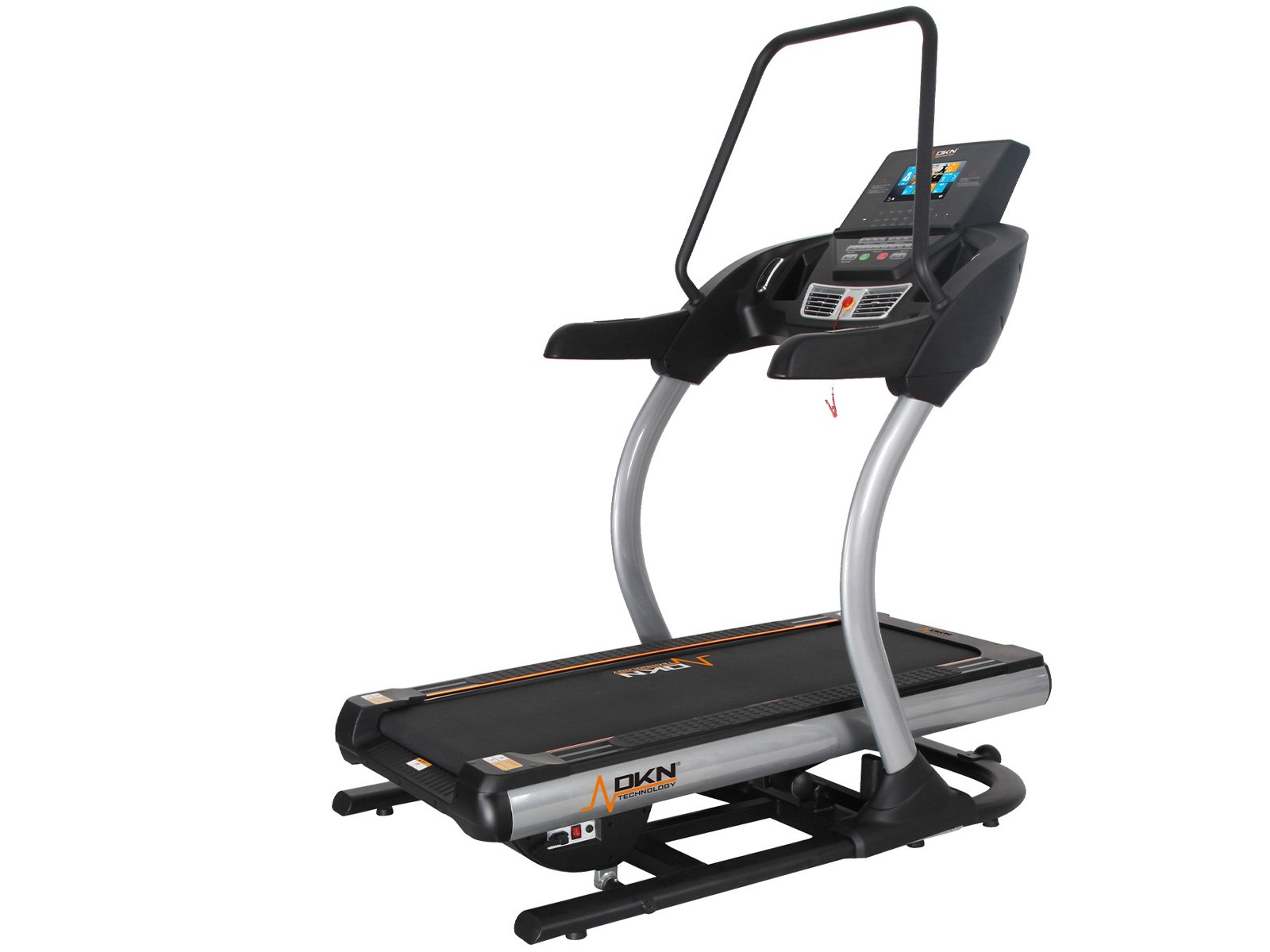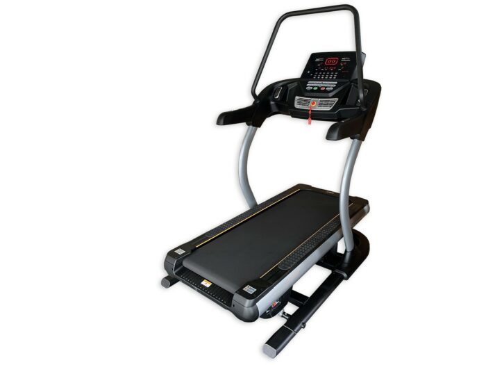 # Decline loopband TMC Pro De loopband biedt een reeks functies voor effectieve workouts. Het scherm toont verschillende parameters: TIJD: 0:00 – 99.59 (MIN) AFSTAND: 0,00 – 99,9 (KM) CALORIEËN: 0,0 – 999 (KC) SNELHEID: 1,0 – 20,0 (KM/U) HARTSLAG: 50 – 200 (BPM) HELLING: -5 – 40%25 **Kenmerken:** Start en Stop: Druk 3 seconden op “START” om te starten en op “STOP” om de loopband te stoppen. Programma’s: Kies uit 18 vooraf ingestelde programma’s, 3 gebruikersinstellingen, 4 oefenstanden en een testprogramma voor lichaamsvet. Veilig slot: Als het veiligheidsslot wordt verwijderd, stopt de loopband; als het slot wordt geplaatst, worden de gegevens gewist en wordt de loopband in stand-by gezet. Belangrijkste functies: Bedieningselementen zijn START, STOP, PROG, MODE, SPEED/+/-, INCLINE/+/-. Snelkoppelingen: Snelheid en helling snelkoppelingen kunnen worden ingesteld. Hartslagweergave: Als je de hartslagknop 5 seconden lang ingedrukt houdt, wordt de hartslag (50-200 BPM) weergegeven. **Speciale functies:** Kilometer naar mijl omrekenen: Druk 3 seconden op PROGRAM en MODE. Softwareversie opvragen: Druk gedurende 1 seconde op SPEED+ en SPEED-. Incline studeren: Druk 3 seconden op INCLINE+ en INCLINE- zonder de veiligheidstoets. **Lichaamsvet test:** De loopband heeft een testprogramma voor lichaamsvet dat toegankelijk is door in stand-by continu op MODE te drukken. Stel parameters in voor geslacht, leeftijd, lengte en gewicht: Geslacht: 01 voor man, 02 voor vrouw. Leeftijd: In te stellen tussen 10 en 99. Hoogte: Ingesteld op 100 tot 200 cm. Gewicht: In te stellen tussen 20 en 150 kg. Na het instellen van de parameters verschijnt “F5” op het scherm. Houd het handvat pulse board 5-6 seconden vast om lichaamsvet (FAT) te berekenen. Deze test meet de relevantie tussen lengte en gewicht en helpt om het gewicht aan te passen op basis van gezondheidsindicatoren.