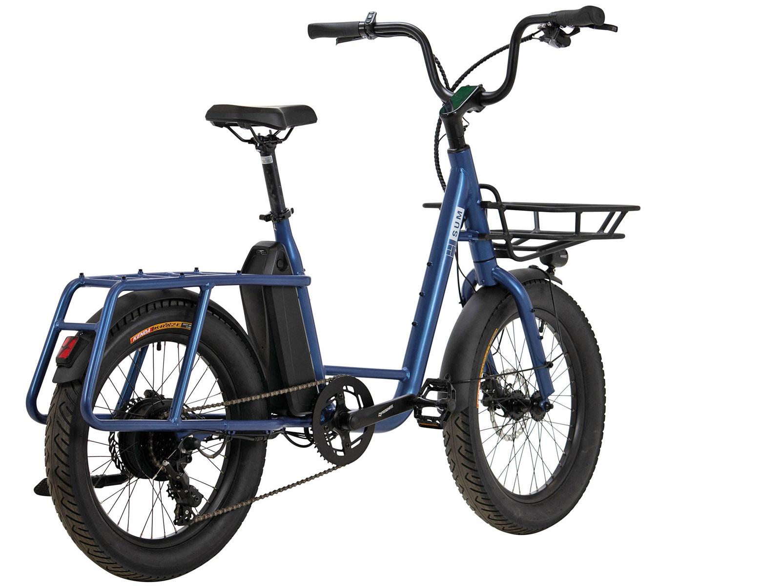 De keuze is reuze in de SUM Uco serie. Er is een stalen versie, een aluminium en een midmotor uitvoering, in diverse kleuren. De Uco Plus staat een treedje hoger dan de Uco Steel. Het aluminium frame, de 13 Ah accu, hydraulische schijfremmen en een 8 versnellingen derailleur bieden net wat meer. De Bafang achterwielmotor levert 45 Nm trekkracht, zodat je moeiteloos kunt rondrijden, ook wanneer je tegen de maximaal toelaatbare belasting van 150 kilo aanzit. De wielen zijn voorzien van hydraulische schijfremmen en 3 inch brede 20 inch banden. Comfortabel veel loopvlak, ook op slecht wegdek of het strand. De accu is achter de zitbuis gemonteerd en kan zo nodig eenvoudig worden uitgenomen om binnenshuis op te laden. Het kleurendisplay is geïntegreerd in de stuurkop. Je kunt kiezen uit 5 trapondersteuningsniveaus en mocht je even wat extra power nodig hebben, dan schakel je de boost-functie in. De motor ondersteunt tot maximaal 25 km per uur. De actieradius van de Uco Plus bedraagt zo’n 50 kilometer, het is geen fiets voor de lange afstand. De compacte, ergonomische bouw maakt deze elektrische transportfiets goed handelbaar en inzetbaar voor het hele gezin. Geschikt voor klein vrachtvervoer, boodschappen, vrije tijd, school en werk. De achterdrager is aangelast aan het lage instapframe, waardoor je er tot 50 kilo last op kunt vervoeren. Op het voorrek mag 15 kilo mee. Door de prima verstelbaarheid van zadel en stuur vinden mensen van 160 tot 180 cm zeker een fijne zitpositie op de Sum Uco Plus.