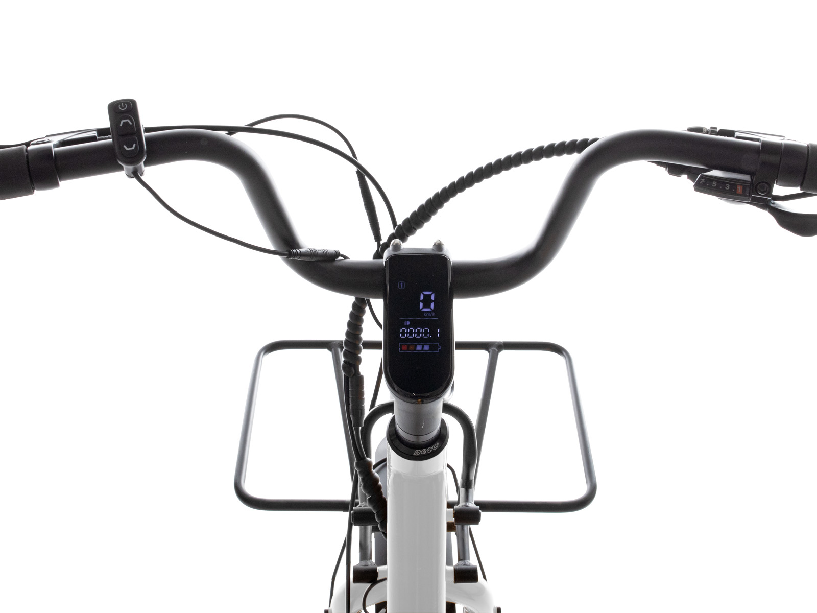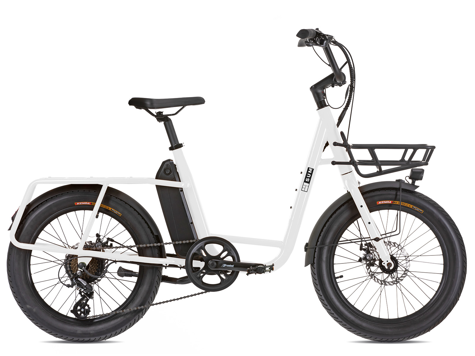 De keuze is reuze in de SUM Uco serie. Er is een stalen versie, een aluminium en een midmotor uitvoering, in diverse kleuren. De Uco Steel is het instapmodel, dat zich onderscheid door een stalen frame, 10.4 Ah accu, mechanische schijfremmen en een 7 versnellingen derailleur. De Bafang achterwielmotor levert 35 Nm trekkracht, zodat je moeiteloos kunt rondrijden, ook wanneer je tegen de maximaal toelaatbare belasting van 150 kilo aanzit. De wielen zijn voorzien van mechanische schijfremmen en 3 inch brede 20 inch banden. Comfortabel veel loopvlak, ook op slecht wegdek of het strand. De accu is achter de zitbuis gemonteerd en kan zo nodig eenvoudig worden uitgenomen om binnenshuis op te laden. Het kleurendisplay is geïntegreerd in de stuurkop. Je kunt kiezen uit 5 trapondersteuningsniveaus en mocht je even wat extra power nodig hebben, dan schakel je de boost-functie in. De motor ondersteunt tot maximaal 25 km per uur. De actieradius van de Uco Steel bedraagt zo’n 40 kilometer, het is geen fiets voor de lange afstand. De compacte, ergonomische bouw maakt deze elektrische transportfiets goed handelbaar en inzetbaar voor het hele gezin. Geschikt voor klein vrachtvervoer, boodschappen, vrije tijd, school en werk. De achterdrager is aangelast aan het lage instapframe, waardoor je er tot 50 kilo last op kunt vervoeren. Op het voorrek mag 15 kilo mee. Door de prima verstelbaarheid van zadel en stuur vinden mensen van 160 tot 180 cm zeker een fijne zitpositie op de Sum Uco Steel.