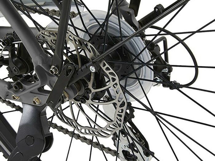 **Een elektrische damesfiets met een krachtige middenmotor en 7 versnellingen, dat is de Urban E600.** De fiets ligt erg goed op de weg, omdat het gewicht van de motor precies in het midden en laag bij de grond zit. De accu bevindt zich op de bagagedrager. De 5 ondersteuningsstanden schakelt u eenvoudig in op het digitale display. De mechanische schijfremmen zorgen ervoor dat de fiets onder alle omstandigheden vlot is af te remmen. Deze luxe en comfortabele donkergrijze e-bike ziet er met het bruine zadel en handgrepen super goed uit. De fiets heeft een frame van aluminium, de zadelbuis is 48 cm. Door een lange zadelpen en het verstelbare stuur is deze fiets op maat te stellen voor personen van ca 160 tot 185 cm. Wanneer u graag fietst en uw e-bike niet alleen voor korte ritjes van huis naar werk of winkel gebruikt, maar ook juist behoorlijke toerritten wilt maken, is de Urban E600 de door ons aangeraden keuze. Het weggedrag van deze luxe e-bike is uitstekend te noemen, dankzij de laag in het frame gemonteerde middenmotor. Met een keuze uit 7 versnellingen kunt u zowel bergop als bergaf, op vlak terrein, met wind mee en wind tegen altijd uit de voeten. Naarmate u een hogere trapondersteuningsstand kiest wordt het steeds gemakkelijker om een stevig tempo vol te houden. Het nadeel daarvan is dat hoe meer trapondersteuning u vraagt, hoe minder actieradius de fiets zal hebben. Met de 13 Ah accu is er echter vrijwel altijd voldoende capaciteit voorhanden. **Specificaties in het kort:** Shengyi middenmotor 250 W, 36 V 13 Ah, 36V, 468 Wh accu, uitneembaar Shimano Altus 7 versnellingen derailleur LCD display, 5 ondersteuningsstanden Aluminium frame 48 cm 28 inch dubbelwandige velgen Schijfremmen voor en achter Zijstandaard Kettingscherm **Service en garantie** Deze elektrische fiets is van onberispelijke kwaliteit. Mocht er echter toch wat mis mee zijn dan heeft u 2 jaar garantie op alles, behalve de slijtende delen. De fabrikant werkt samen met FSNplus om garantiegevallen te behandelen. Bij FSNplus zijn zo’n 160 fietsenmakers aangesloten die over het hele land verspreid zijn. Een aantal is een mobiele fietsenmaker. Hierdoor is er dus altijd een bij u in de buurt. Vandaar dat u met een gerust hart deze fiets online kunt aanschaffen.
