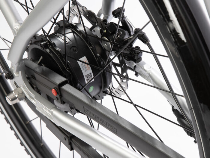 **Met de moderne, stabiele Villette l’ Amant Automatic beleeft je het ultieme elektrische fietsen. Dat komt door de achterwielmotor met ingebouwde twee versnellingen automaat. ** Met de trapondersteuning ingeschakeld fiets je met minimale inspanning tot maximaal 25 km per uur. De automaat schakelt vanzelf naar de hogere of lagere versnelling als de omslagsnelheid (ca 15 km/u) is bereikt. De mechanische schijfremmen in het voor- en achterwiel zijn uitstekend in staat om onder alle omstandigheden snel en veilig af te remmen. De 13 Ah accu is keurig opgenomen in het solide aluminium frame met de aangelaste bagagedrager. Deze frameconstructie zorgt voor een stabiel weggedrag. Hierdoor zul je met veel vertrouwen en plezier op de Amant Automatic rijden. **Heerlijk toeren** De automaat kiest welk van de twee versnellingen er gebruikt wordt. Zelf bepaal je welke trapondersteuningsstand je op het LCD display kiest. Het genieten kan direct beginnen. De geveerde voorvork en het comfortabele zadel vangt hobbels in het wegdek op. Met de Villette l’ Amant heb je een goed uitgeruste elektrische fiets in handen. Een e-bike waarmee het heerlijk toeren is en die ook geschikt is voor ritjes naar de stad of voor woon-werk verkeer. **Let op! De fiets wordt zonder slot geleverd.** De Villette l’ Amant heeft een framemaat van 48 cm. Door de lange zadelpen en het verstelbare stuur kunnen velen een prettige zitpositie op de fiets instellen. De fiets is dan ook geschikt voor mensen van ca 160 tot 185 cm. **Service en garantie** zijn in de vertrouwde handen van FSNplus. Bij aankoop van de fiets krijg je de contactgegevens mee. FSNplus heeft een landelijk dekkend netwerk van vaste en mobiele fietsreparateurs. Er is er altijd een bij je in de buurt.