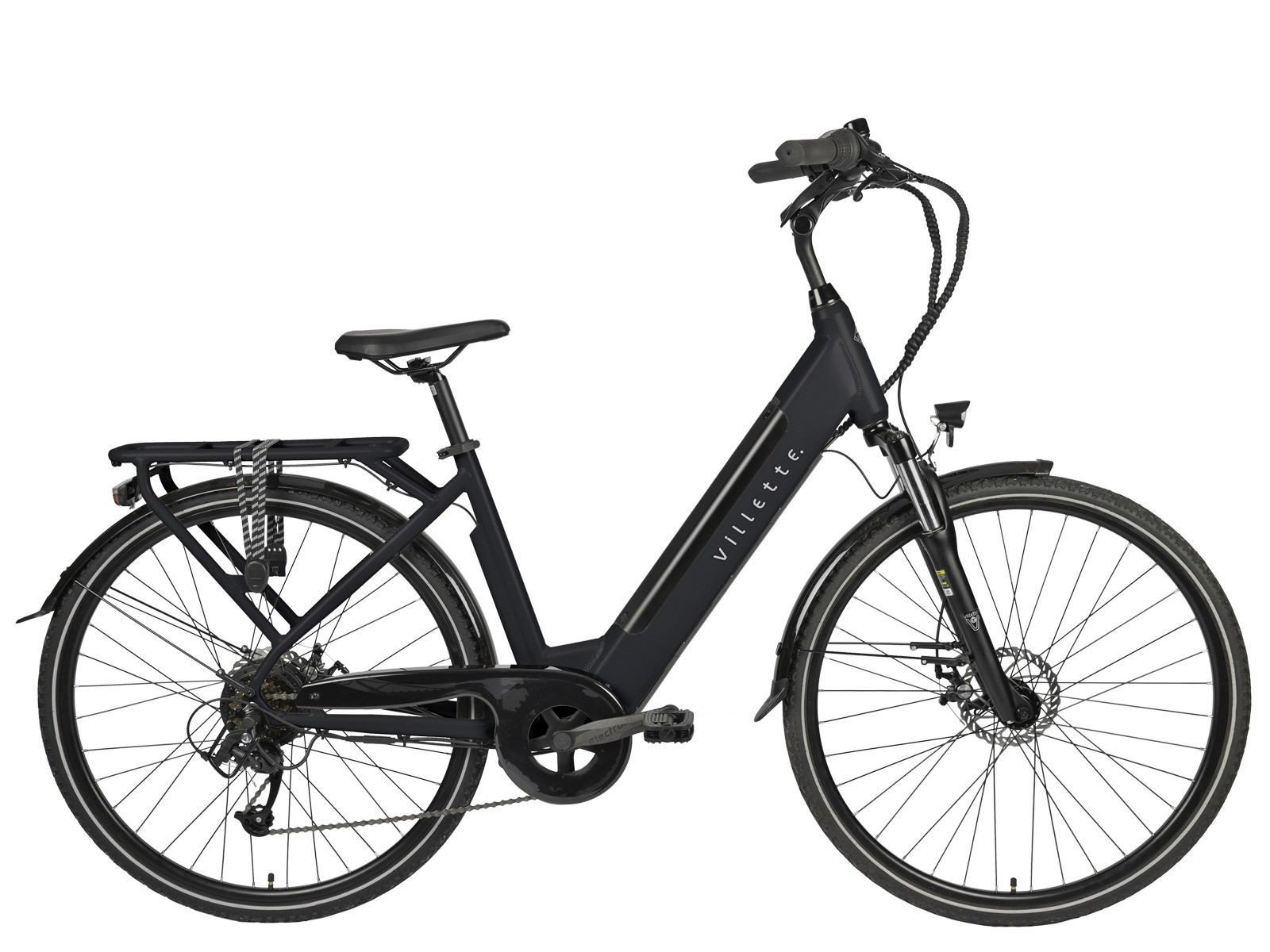 ** Met de solide en moderne elektrische damesfiets Villette l’ Amant rijdt u moeiteloos, dankzij de achterwielmotor en de 7 versnellingen derailleur. ** Met de trapondersteuning ingeschakeld fietst u met minimale inspanning tegen de wind in, een heuveltje op of met een behoorlijke last op de stevige bagagedrager. Natuurlijk gaat het met wind mee nog gemakkelijker, en kunt u een snelheid van 25 km/u bereiken met ondersteuning. Dankzij de 7 versnellingen kunt u met eigen kracht mogelijk nog sneller. Gelukkig zijn de mechanische schijfremmen in het voor- en achterwiel hier op berekend, zodat u in geval van nood ook zo weer stilstaat. De 13 Ah accu is keurig opgenomen in het solide aluminium frame en omdat de Bafang achterwielmotor door de cassette met 7 tandwielen voor een groot deel aan het oog wordt onttrokken is het niet direct duidelijk dat deze fraaie fiets voorzien is van elektrische trapondersteuning. Totdat u andere weggebruikers fluitend voorbijfietst, natuurlijk. * *Heerlijk toeren ** Kies een van de 7 versnellingen met de draaigreep rechts aan het stuur, bepaal welke trapondersteuningsstand u wilt gebruiken en selecteer deze op het LCD display bij uw linkerhand, en geniet van uw fietstochtje. De geveerde voorvork vangt hobbels in het wegdek op, net als het comfortabele zadel. Met de Villette l’ Amant heeft u een goed uitgeruste elektrische fiets in handen. Veel waar voor uw geld, een e-bike waarmee het heerlijk toeren is, maar die ook geschikt is voor ritjes naar de stad of voor woon-werk verkeer. (De fiets wordt zonder slot geleverd, wij raden u aan een ART gekeurd slot aan te schaffen). De Villette l’ Amant heeft een framemaat van 48 cm, maar door de lange zadelpen en het verstelbare stuur kunnen velen een prettige zitpositie op de fiets instellen. De fiets is dan ook geschikt voor mensen van ca 160 tot 185 cm. ** Kwaliteit en betrouwbaarheid ** Elke Villette fiets wordt door vakmensen in elkaar gezet met gebruikmaking van goede, bekende, merkonderdelen. U kunt dan ook van uw fiets op aan. Natuurlijk is geregeld onderhoud een vereiste om de fiets in topstaat te houden. Hiervoor kunt u terecht bij diverse fietsenmakers. Mocht de fietsenmaker om de hoek het onderhoud weigeren uit te voeren, dan kunt u gebruikmaken van de diensten van de bij FSNplus aangesloten fietsenmakers. FSNplus is tevens de door de fabrikant aangewezen partij om reparaties onder garantie uit te laten voeren. Bij aankoop van de fiets krijgt u de gegevens van FSNplus mee, zodat u eenvoudig met hen in contact kunt treden.