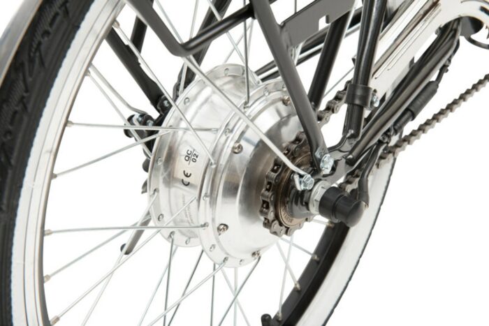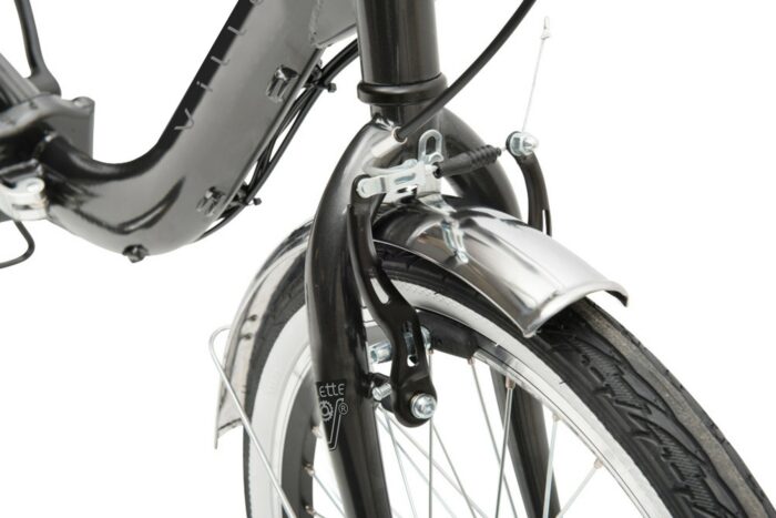 **Met de Villette le Balade is het prettig een stukje fietsen. De fiets is voorzien van een achterwielmotor, waardoor de aandrijving natuurlijk aandoet.** Omdat de fiets geen versnelling heeft is de bediening heel eenvoudig: accu aan en gaan. Indien u de accu niet aanzet werkt de fiets zoals een gewone fiets. De zithouding is prettig en dankzij de lange zadelpen kunnen mensen van 155 tot pakweg 185 cm goed met deze vouwfiets uit de voeten. De fiets is helaas moeilijk in te vouwen, relatief zwaar en het stuur niet is in te klappen. Als makkelijk te pakken, snel inzetbare korte afstandenfiets voor vlak terrein is de Balade echter zeer geschikt. De actieradius van de fiets is tussen de 25 en 40 kilometer, afhankelijk van onder andere wegdek en weersomstandigheden. Deze fiets is vooral bedoeld voor korte ritjes in stad, dorp en omgeving. Voor vrachtwagenchauffeurs kan dit een ideale oplossing zijn om van de overnachtingsplaats naar de bewoonde wereld te rijden. Ook op industrieterreinen of bijvoorbeeld kassen, waar relatief grote afstanden moeten worden overbrugd door de werknemers, kan deze fiets erg goed van pas komen. Let op! deze fiets heeft geen display of instelbare trapondersteuning. Met de accu uit is het een eenvoudige fiets met een versnelling, waar u gemakkelijk overal mee naar toe fietst in vlak terrein. Met u de accu ingeschakelt zal de fiets bij de eerste pedaalslag automatisch trapondersteuning bieden. De snelheid zal dan naar de 25 km per uur oplopen, afhankelijk van hoe snel u de pedalen rond trapt. De ervaring leert dat deze fiets om deze redenen niet geschikt is voor de wat onzekerder, veelal oudere, fietsers. **Specificaties in het kort:** MXUS achterwielmotor 250 W, 24 V 7.8 Ah, 24V, 187 Wh accu, uitneembaar Stalen frame 20 inch dubbelwandige velgen Kettingscherm V-brakes voor en achter Zijstandaard