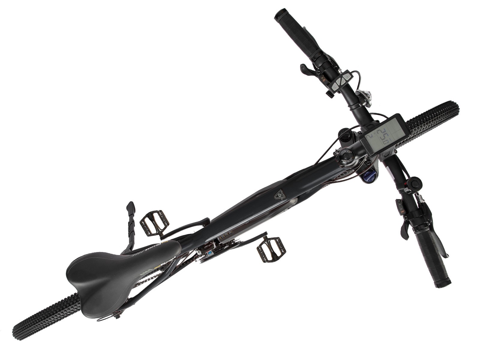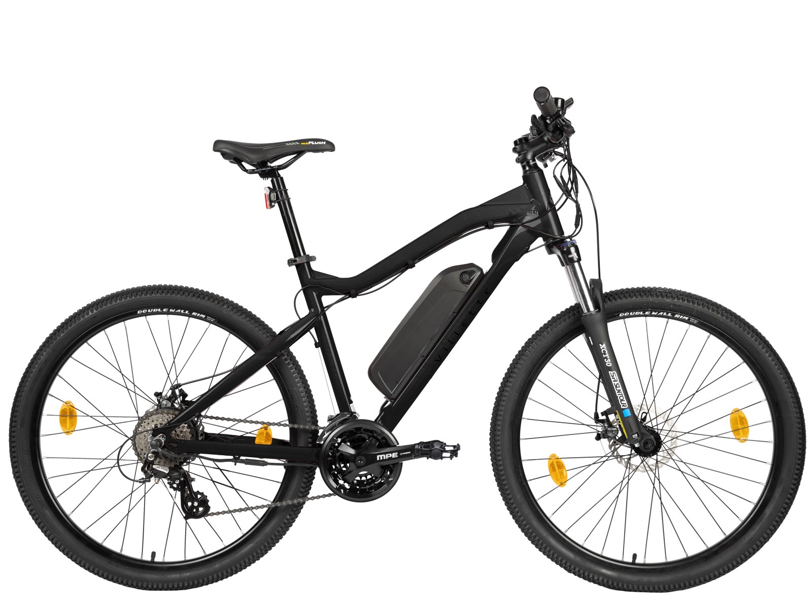 Mountainbiken is een heerlijke sport die je zo zwaar kunt maken als je zelf wilt. Wanneer je merkt dat je kracht te kort komt voor echt mooie ritten of om die ene steile helling op te kunnen rijden brengt de Villette le Sommet uitkomst! De aluminium fiets heeft een framehoogte van 47 cm en 27.5 inch wielen, zodat de fiets voor veel mannen en vrouwen geschikt is. Het verstelbare stuur en de lange zadelpen maken voor velen een goede zithouding mogelijk. Dankzij de 24 versnellingen met Rapid Fire schakelaars, de geveerde voorvork en de mechanische schijfremmen kun je op deze mountainbike prima uit de voeten op allerlei soorten terrein, dankzij de batterijverlichting ook in de schemering en in de stad. En wordt het allemaal net iets te zwaar of te ver, dan schakel je eenvoudig de trapondersteuning in op het LCD display, waarna de 13 Ah accu zijn stroom naar de MXUS achterwielmotor voert. De 34 Nm trekkracht geeft je net dat beetje extra dat je zo af en toe nodig hebt. En wanneer je deze fiets inzet voor dagelijks gebruik is het natuurlijk ook gewoon een fijne mogelijkheid om zonder al te veel inspanning fris en fruitig op je werk of op school aan te komen. Voor kampeerders met een voorliefde voor de wildere natuur is een elektrische mountainbike een uitstekende keuze. De fietsen kunnen op elke fietsdrager mee worden genomen, de wielen zijn immers niet groter dan een gewone fiets. Ook is deze e-bike prima te gebruiken zonder de motor in te schakelen, waardoor sportievelingen helemaal aan hun trekken komen en er dagenlange tochten mee kunnen maken. Als de inspanning te groot dreigt te worden, of als je gewoon zonder veel inspanning een eindje wilt rijden, schakel je de trapondersteuning in. Hoe dan ook, met een MTB kun je in elk terrein uit de voeten. Deze fiets is wat dat aangaat een stuk bruikbaarder voor echte avonturiers dan een gewone e-bike of een vouwfiets. Villette fietsen: rijden zonder zorgen. Uw Villette e-bike is met veel zorg door vakmensen samengesteld. De gebruikte onderdelen zijn van onberispelijke kwaliteit om een lang en zorgeloos gebruik te kunnen garanderen. U kunt op uw Villette fiets vertrouwen. Vanzelfsprekend dient u de fiets af en toe na te (laten) kijken op slijtage van de slijtende delen, zoals banden, remblokjes, tandwielen en ketting. Op zijn tijd een grondige schoonmaakbeurt (maar niet met een hogedrukspuit!) zal de levensduur verlengen, evenals het om de twee of drie maanden smeren van de draaiende delen. Dit kunt u zelf doen, of bij een fietsenmaker laten uitvoeren. Een fijne fietstocht. Zorg ervoor dat de accu voldoende is opgeladen voor de tocht die u in gedachten heeft. Zijn de banden goed opgepompt? Hou er rekening mee dat de door de fabrikant opgegeven actieradius is berekend met de meest gunstige omstandigheden: gering gewicht van de berijder, prachtig weer, lichtste ondersteuningsstand en volop meetrappen van de berijder. In de praktijk zal de genoemde actieradius vrijwel nooit gehaald worden. Slecht wegdek, te lage bandenspanning, tegenwind en het kiezen van een hogere ondersteuning zijn allemaal factoren die ervoor zorgen dat de actieradius afneemt. Mocht de accu leeg zijn voordat u aan het eind van uw tocht bent, weet dan dat de fiets ook prima zonder ondersteuning fietst, en dat de weerstand van de motor nihil is wanneer deze is uitgeschakeld. Klaar voor vertrek? Niets staat een mooie tocht in de weg. Als u onderweg even wilt stoppen voor een bezoek aan een winkel of horecagelegenheid, geen probleem! Standaard uitklappen en de fiets op slot zetten (de fiets wordt zonder slot geleverd, wij raden u aan een ART gekeurd slot aan te schaffen), neem eventueel de accu uit als dat een zekerder gevoel geeft, en neem die rust. Vaak kunt u bij horecagelegenheden de accu bijladen. Neem dus voor de zekerheid op langere ritten ook de oplader mee. De accu, onderhoud en opslag. De accu van uw Villette e-bike is een belangrijk onderdeel van het elektrische systeem. Bij aankoop zal de accu meestal half vol zijn. U dient de accu voor het eerste gebruik volledig op te laden. Rij de accu (in een of meerdere tochtjes, dat maakt niet uit) zo ver leeg dat de accu indicatie op het display gaat knipperen. Laad vervolgens de accu weer volledig op. Herhaal deze cyclus minstens 4 keer. Op deze manier zal de accu optimaal geactiveerd worden en de volledige accucapaciteit gebruikt kunnen worden. Na deze 4 cycli van helemaal opladen en vrijwel helemaal leegrijden kunt u de accu ook tussentijds gaan bijladen, wanneer dat nodig zou zijn. Dat heeft dan geen invloed meer op de levensduur.