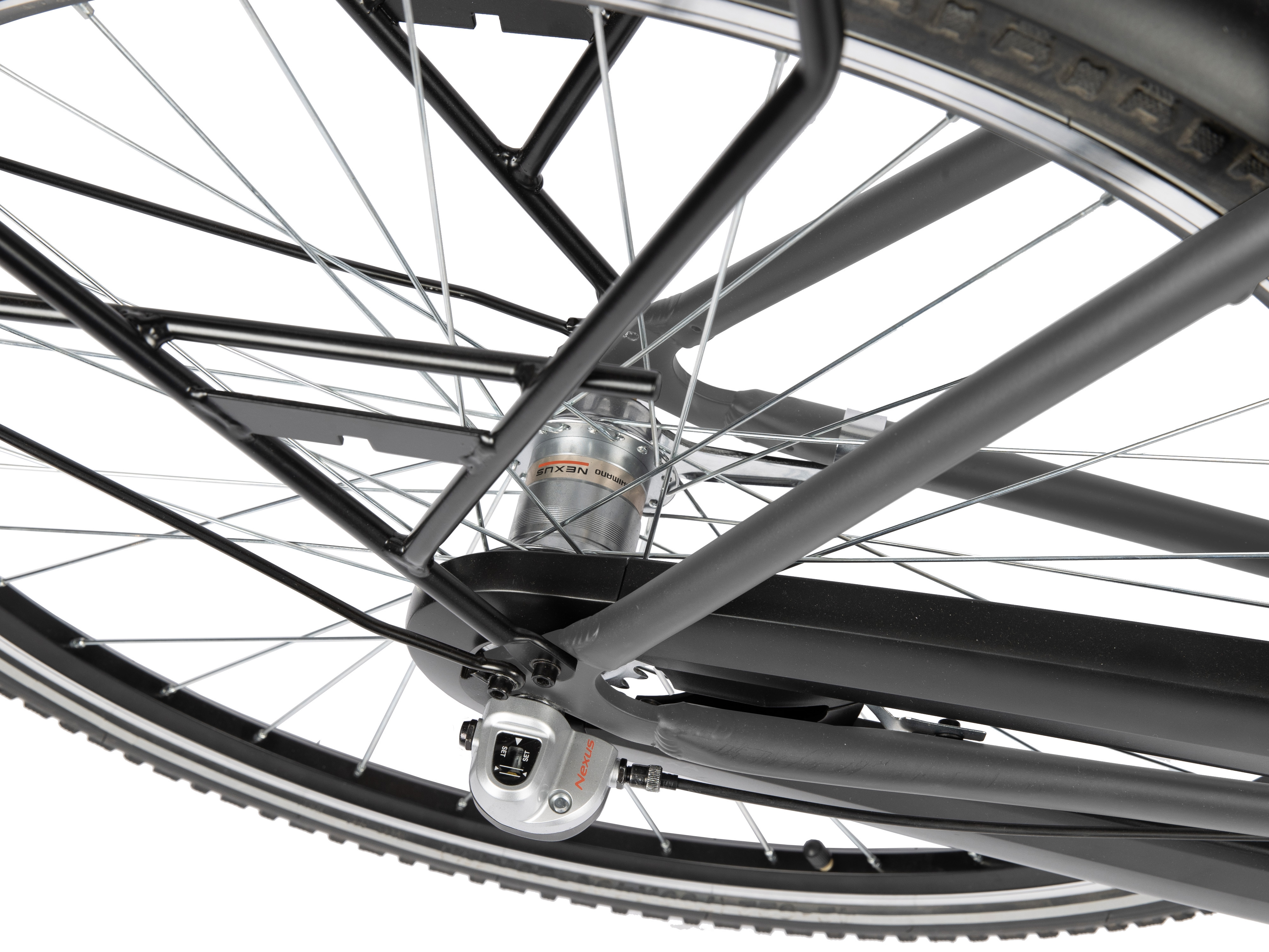 **Een elektrische transportfiets met traditionele uitstraling en betrouwbare techniek.** Dat is de Villette Transport Nexus 3. Het oversized aluminium omafietsframe in combinatie met de gesloten kettingkast en het stevige rek boven het voorwiel geven de Villette Transport een degelijke en traditionele uitstraling. De Bafang voorwielmotor, de 13 Ah accu onder de achterdrager en de Shimano Nexus 3 versnellingsnaaf maken er een betrouwbare en gebruiksvriendelijke e-bike van. **School, werk, boodschappen, vrije tijd** Wanneer je vrijwel dagelijks een eind moet fietsen met een zware boekentas of een lading boodschappen is de Villette Transporter een uitkomst. De fiets is stevig, vergt niet al te veel onderhoud en is gemakkelijk te bedienen. De prijs/kwaliteitsverhouding is uitstekend en ook in je vrije tijd zal deze e-bike van pas komen. De zit is rechtop, heerlijk voor kortere ritjes van huis naar school of werk en wat minder geschikt voor toertochten, maar dankzij de krachtige accu en trapondersteuning is ook dat geen straf. **Betrouwbaar, eenvoudig** Stap op, selecteer een ondersteuningsstand op het LED display, schakel naar de eerste versnelling en begin te fietsen. Volle bepakking of harde tegenwind maken niets uit, zolang je de accu maar vol genoeg hebt geladen voor je rit. De Villette Transport Nexus 3 framemaat is 51 cm. Door de lange zadelpen en het in hoogte te verstellen stuur passen mensen van ca 165 tot 185 cm op deze e-bike. **Let op! De fiets wordt zonder slot geleverd** Bepaal zelf wel type slot je nodig hebt, een ringslot, een kettingslot of allebei. Als je je fiets wil verzekeren is een ART2 slot vaak verplicht. **Service en garantie** zijn in de vertrouwde handen van FSNplus. Bij aankoop van de fiets krijg je de contactgegevens mee. FSNplus heeft een landelijk dekkend netwerk van vaste en mobiele fietsreparateurs. Er is er altijd een bij je in de buurt. Als eigenaar van de fiets ben je zelf verantwoordelijk voor het onderhoud en het controleren en vervangen van de slijtende onderdelen, zoals remblokken en banden.