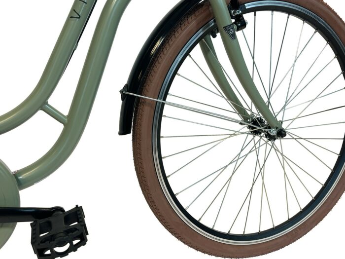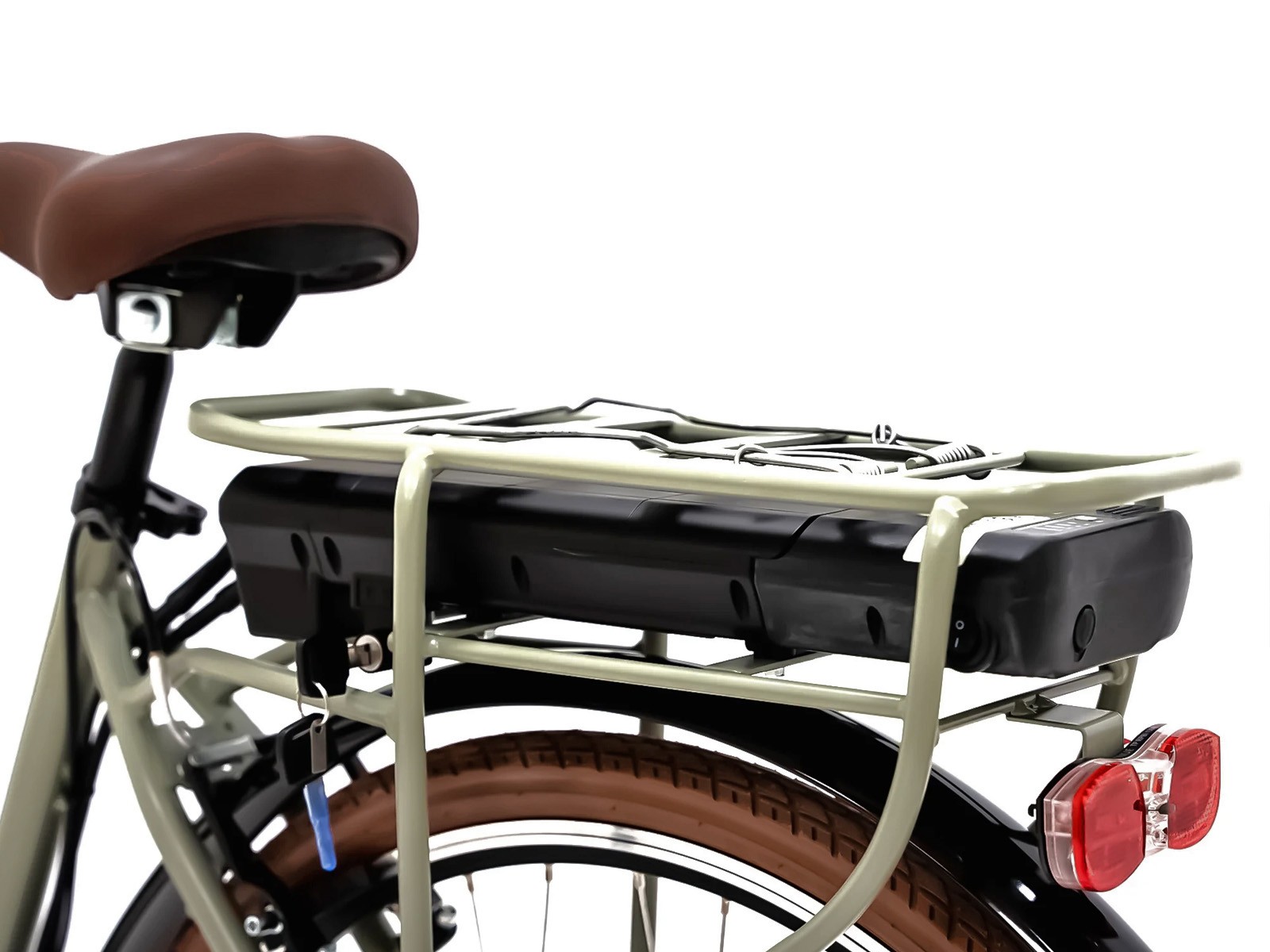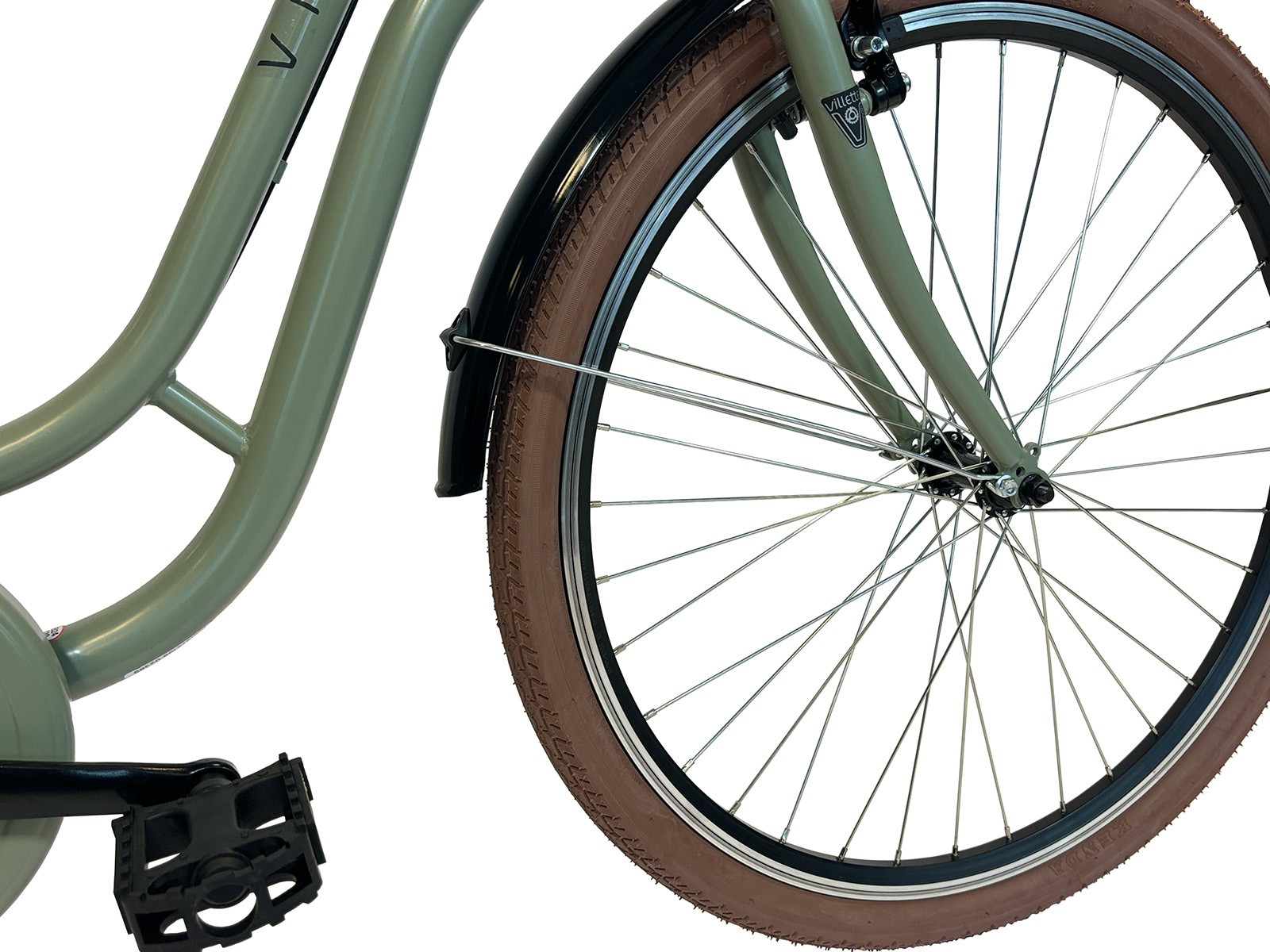 **Deze elektrische fiets met retro uitstraling is een fraaie aanvulling op het Villette assortiment.** Het sierlijk gelijnde stalen frame, met een relatief lage instap en stevige, aangelaste bagagedrager is leverbaar in drie kleuren. Het verstelbare stuur en de lange zadelpen maken het model geschikt voor personen van ca 155 tot 175 cm. De Bafang achterwielmotor wordt gevoed door een 11.6 Ah accu, waardoor de actieradius onder gunstige omstandigheden tot 90 kilometer bedraagt. Met de eenvoudige draaischakelaar aan het stuur kiest u een van de 6 versnellingen, en op het LED display kunt u 3 ondersteuningsstanden selecteren. Ook is daar de meeloop functie te activeren. **Klein maar fijn** Met de 26 inch wielen en een framehoogte van 46 cm is dit een compacte e-bike, bijzonder geschikt voor kleinere mensen, maar door zadel en stuur te verstellen vinden ook mensen met een gemiddelde lengte een fijne zithouding. De prestaties van dit met V-brakes uitgeruste model zijn dankzij de 417 Wh accu en 30 Nm achterwielmotor zeker niet ondermaats. Deze e-bike is een echte eye-catcher waarmee je gemakkelijk even de stad in fietst om te shoppen of een terrasje te pakken. Maar ook voor de rit naar school of werk heb je er een prima fiets aan. **Langer plezier van je fiets** Het fietsen op een elektrische fiets is niet moeilijk, want hetzelfde als een gewone fiets, maar dan met het gevoel van altijd wind mee. Net als een gewone fiets moet je de fiets goed onderhouden om er lang plezier van te hebben. De accu moet goed opgeladen worden, volgens de voorschriften en met de originele oplader. Na een paar maanden gebruik, of na 300 km, zul je de fiets goed moeten laten nakijken, liefst door een fietsenmaker. Je zult de ketting en de remkabels even moeten nastellen en boutjes en moertjes aandraaien. Een voordelige e-bike heeft net zoveel TLC nodig als een dure. Je kunt er dan veel beter op vertrouwen en lekkerder op fietsen.